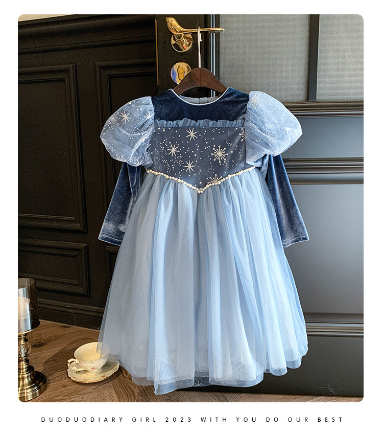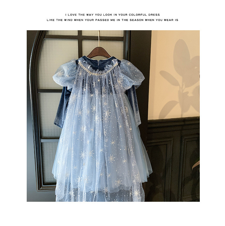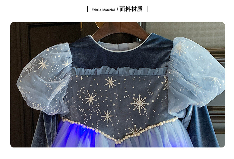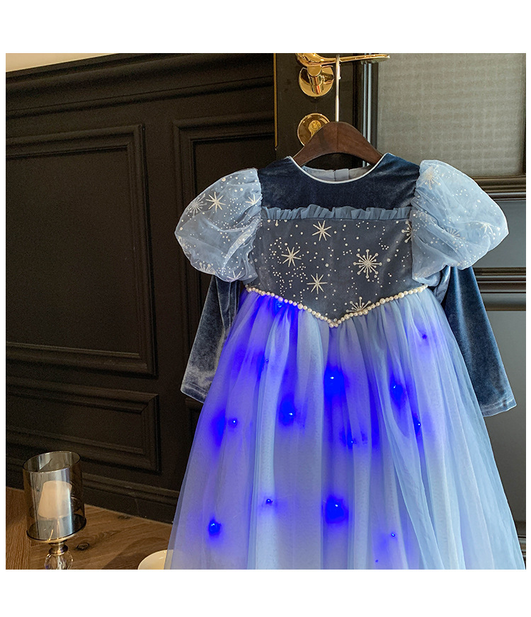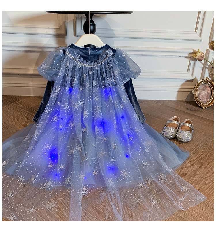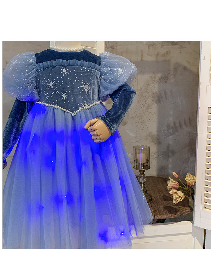 여아 발광 공주 드레스 2025년 봄 어린이 생일 드레스 궁전 스타일 블루 퍼프 메쉬 드레스스토어 가기