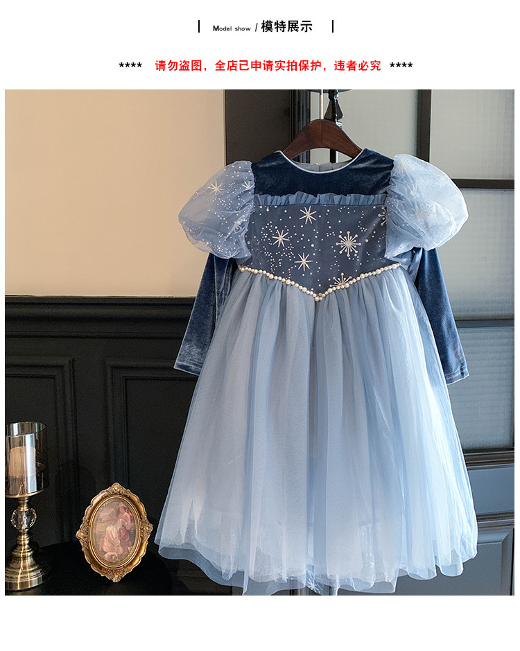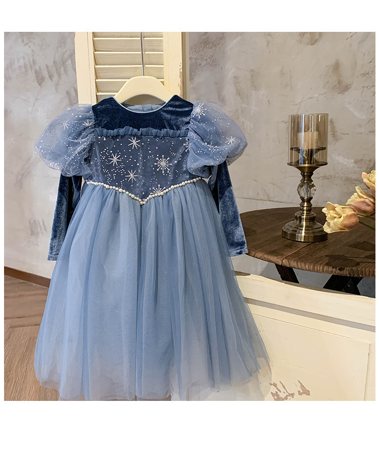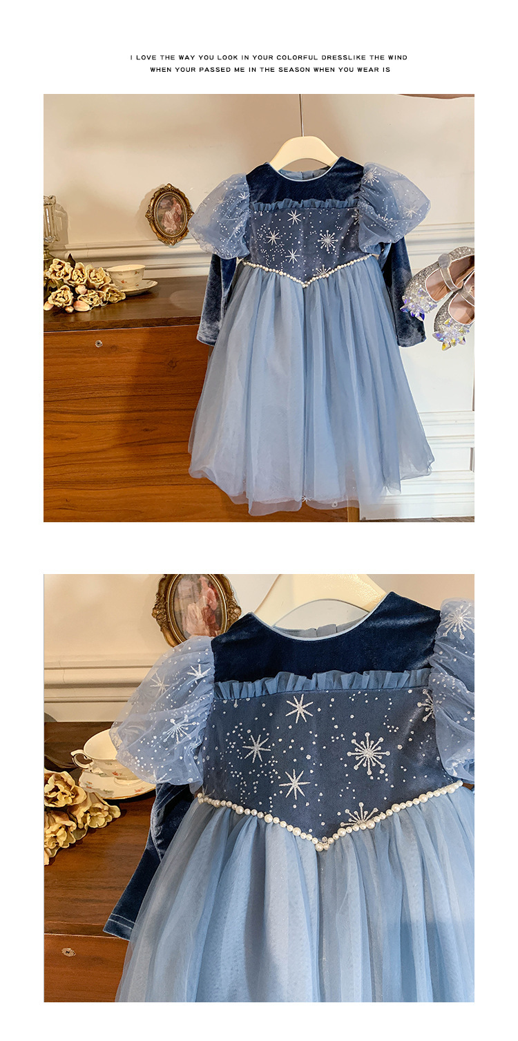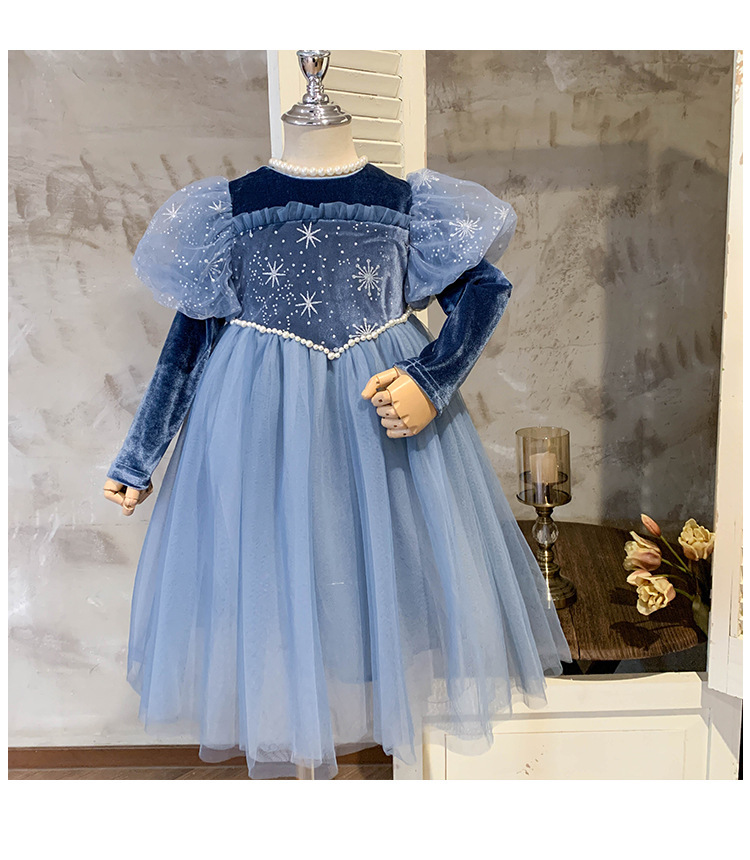 여아 발광 공주 드레스 2025년 봄 어린이 생일 드레스 궁전 스타일 블루 퍼프 메쉬 드레스스토어 가기