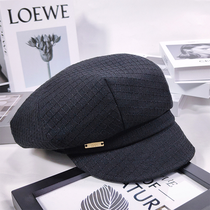 가을과 겨울의 한국어 버전 새 모자 어린이 단색 모든 매치 팔각형 모자 고급 메탈 다이아몬드 표준 모자 어린이 복고풍 모자스토어 가기