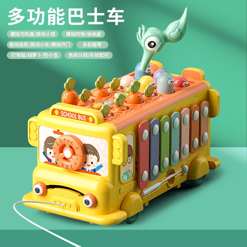 아기 조기 교육 교육 다기능 딱따구리 잡기 곤충 게임 노크 피아노 당기는 무 0-3 6 면 버스 자동차 장난감 1스토어 가기