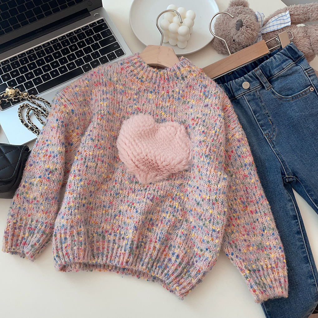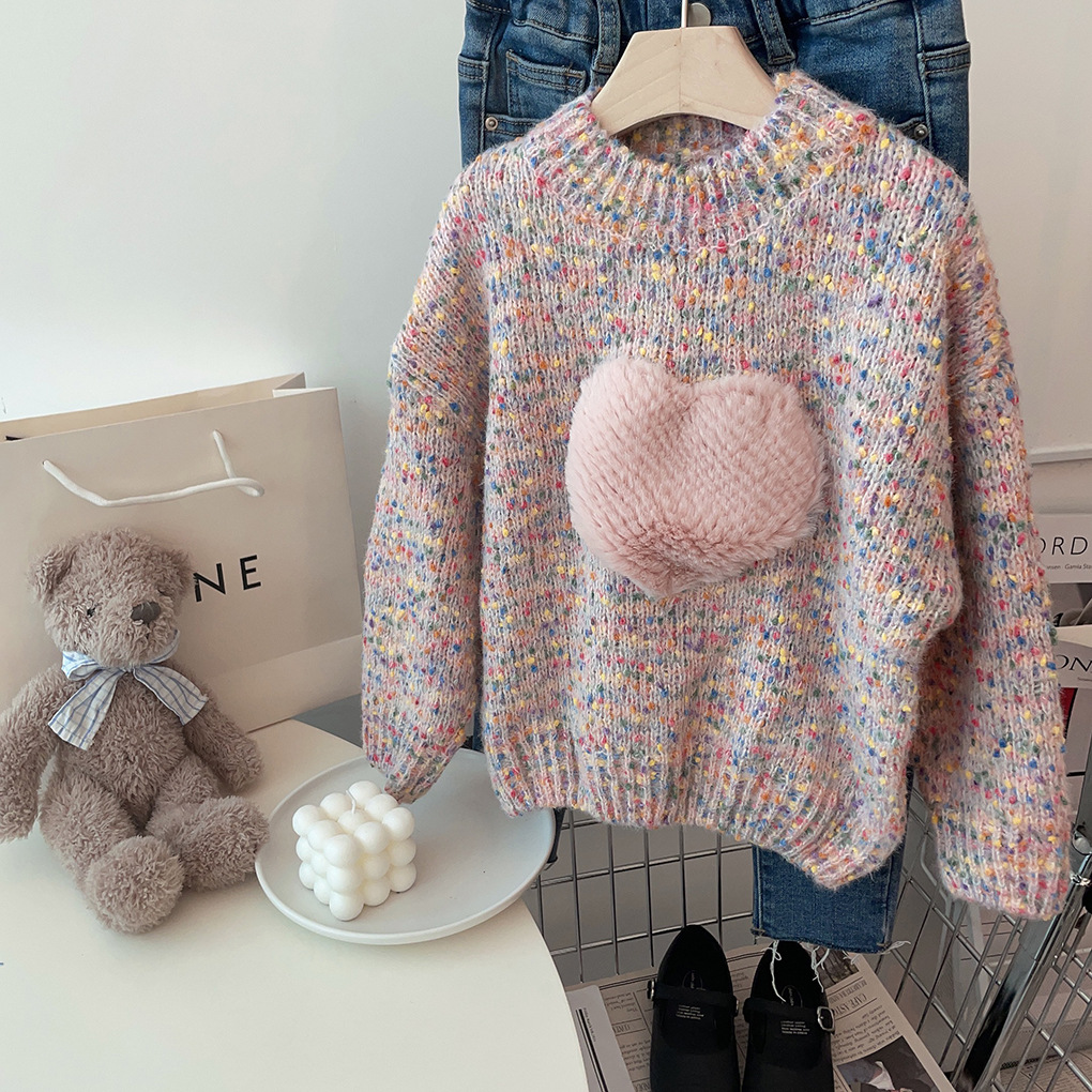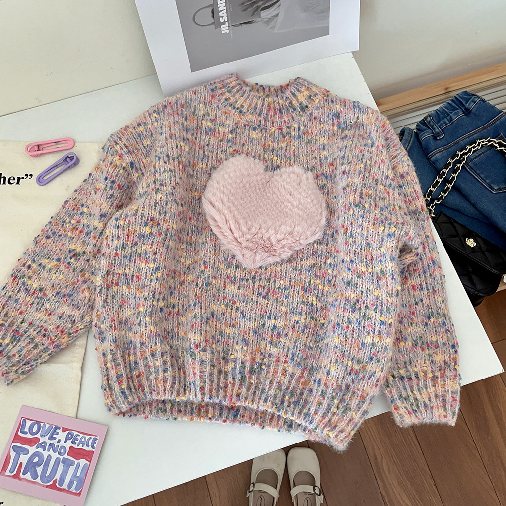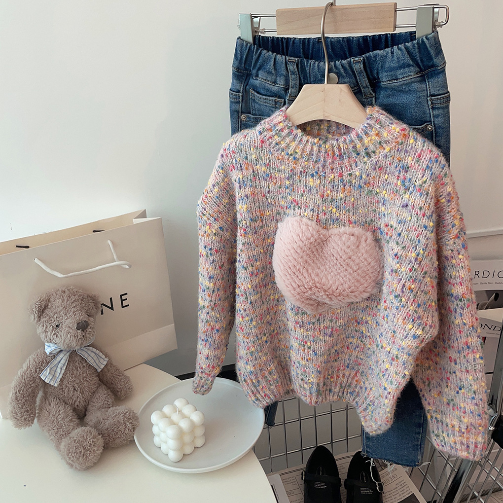 어린 소녀의 3 차원 러브 컬러 스웨터 한국 아동복 2023 가을과 겨울 소녀 외국 스타일 달콤한 스웨터스토어 가기