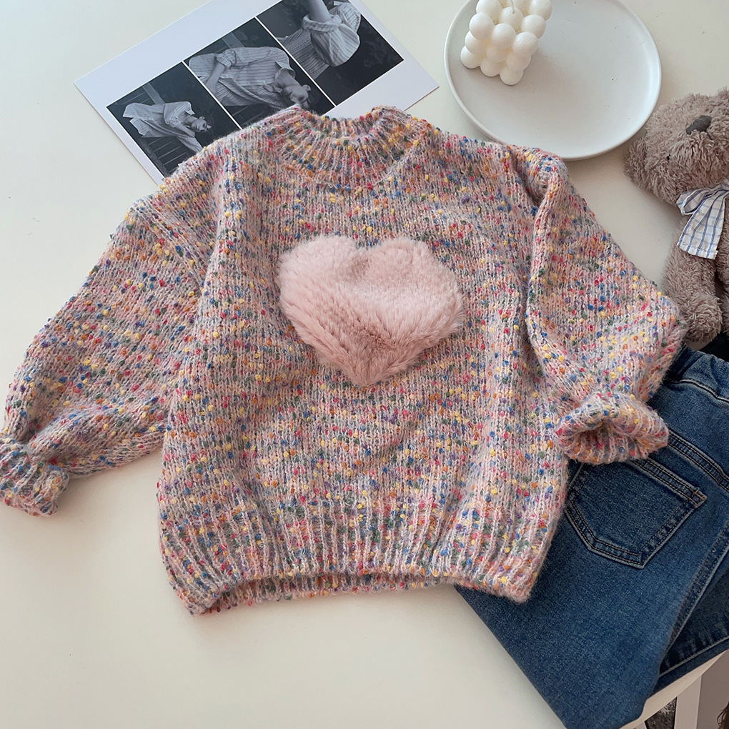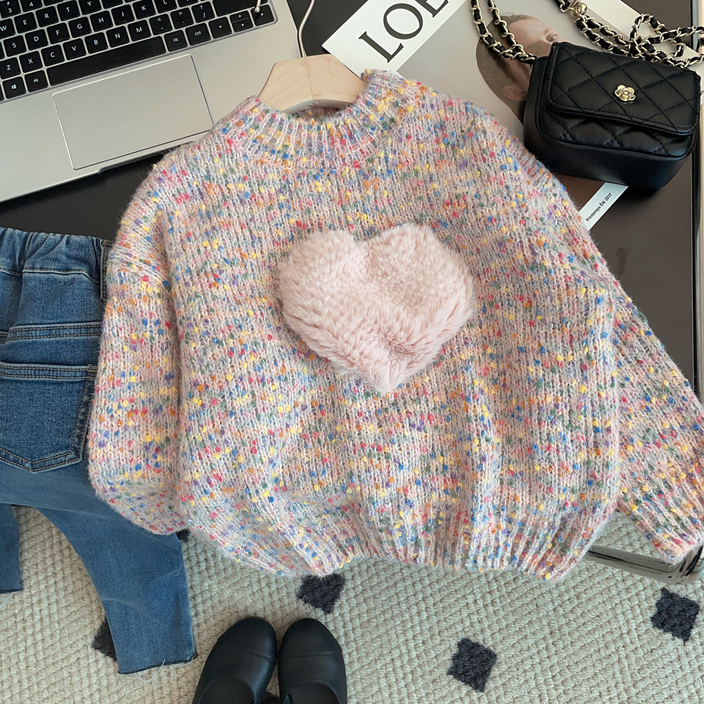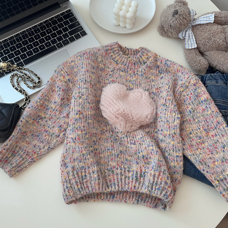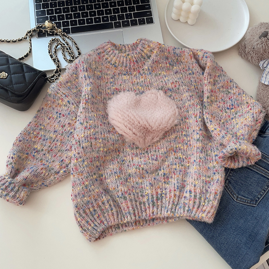 어린 소녀의 3 차원 러브 컬러 스웨터 한국 아동복 2023 가을과 겨울 소녀 외국 스타일 달콤한 스웨터스토어 가기