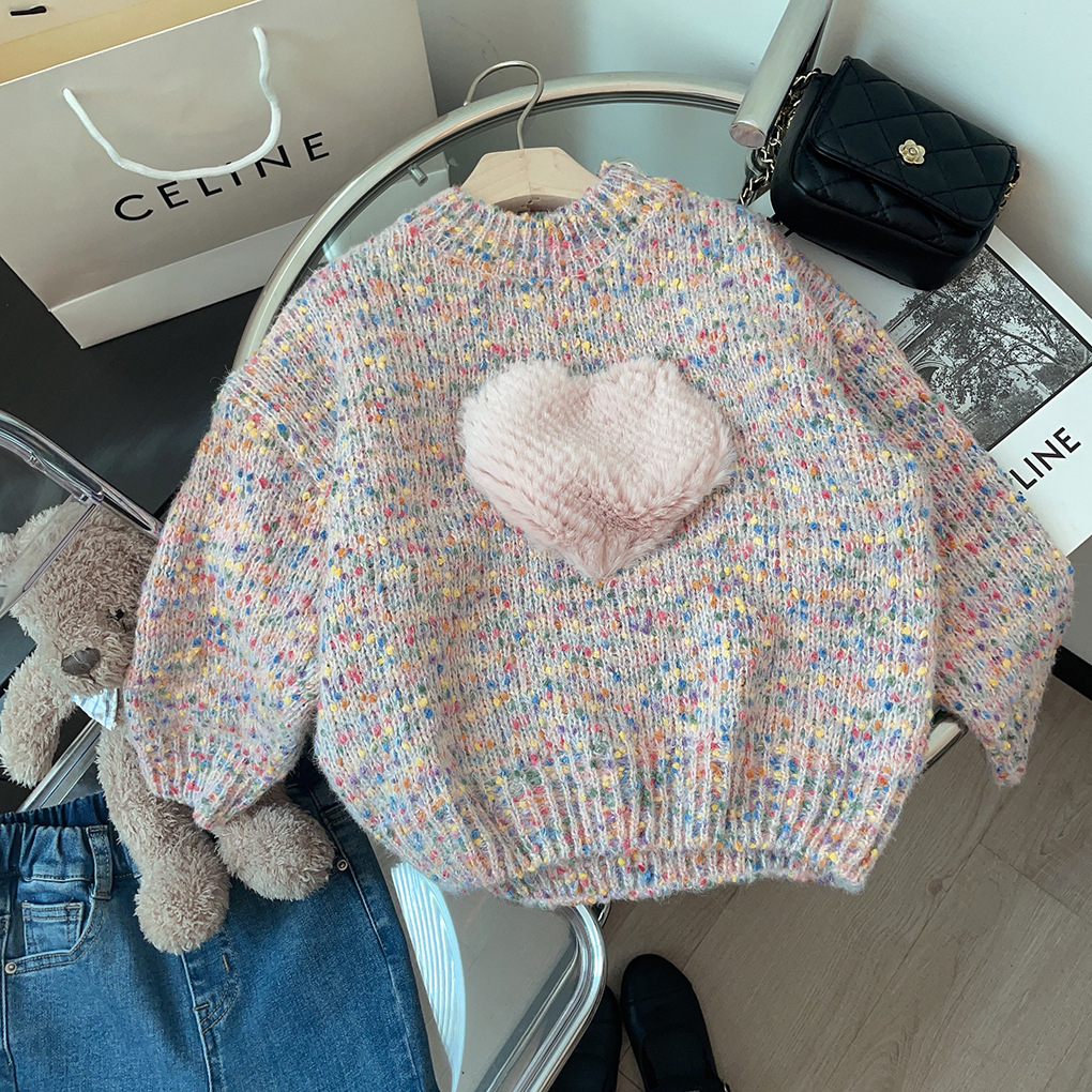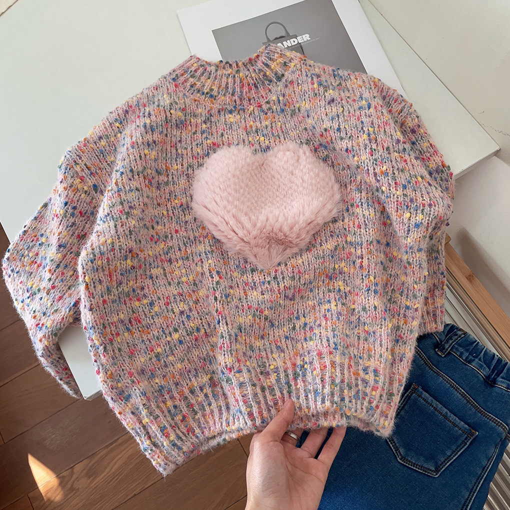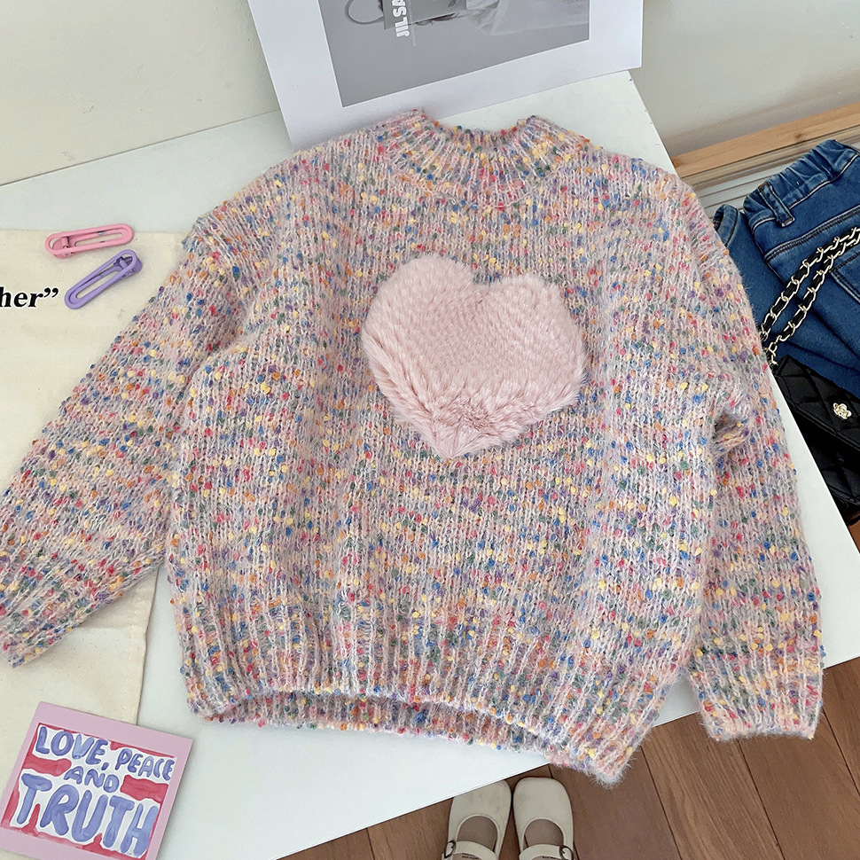 어린 소녀 입체적인 하트 컬러풀 스웨터 한국 아동복 2025 가을 겨울 소녀용 세련되고 달콤한 니트웨어스토어 가기
