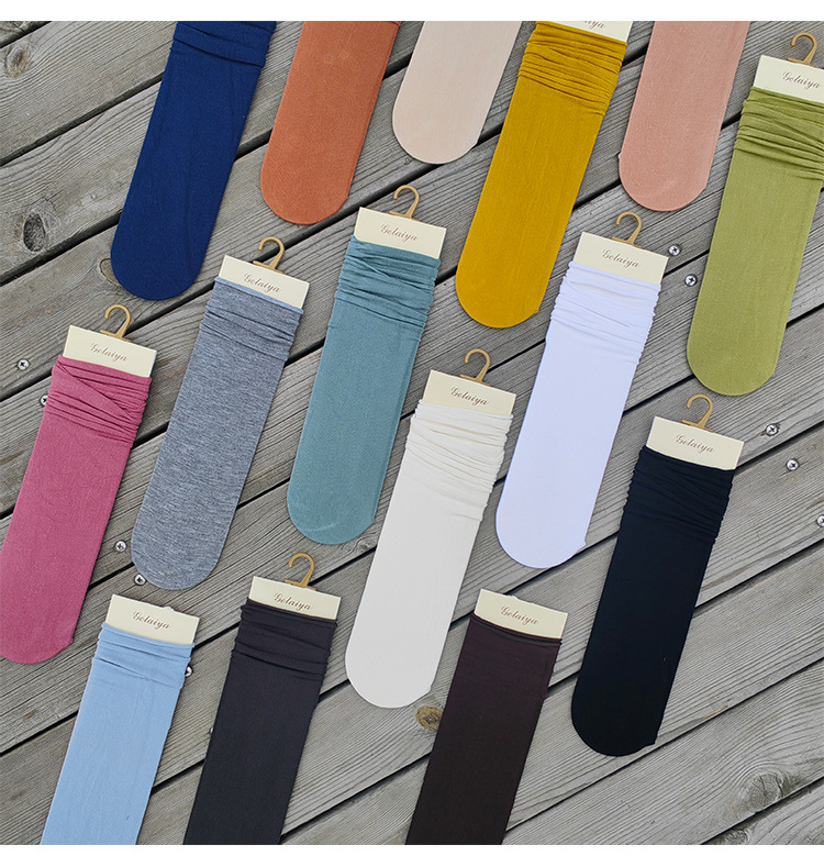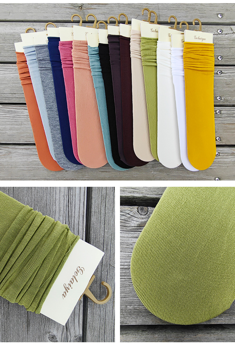 Gleya 1801 여름과 가을 얇은 캔디 컬러 컬러는 솔리드 컬러 일본 중간 길이 양말 순면 양말 여성용 양말