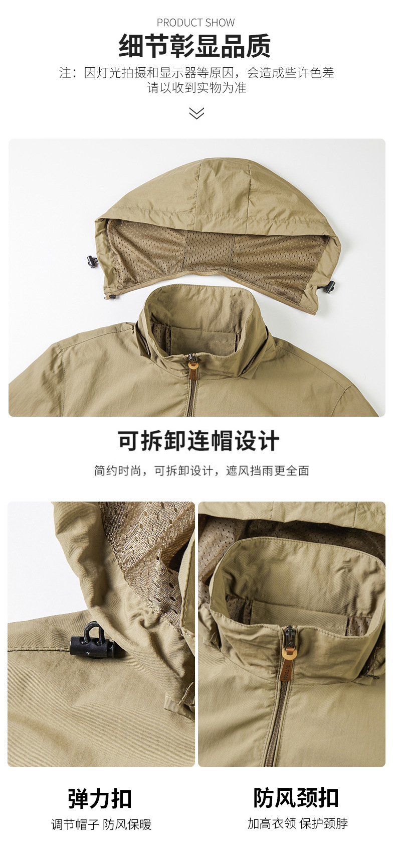 WISH 독립 스테이션 8817 남성용 봄과 가을 얇은 재킷 방풍 방수 이동식 모자 야외 재킷
