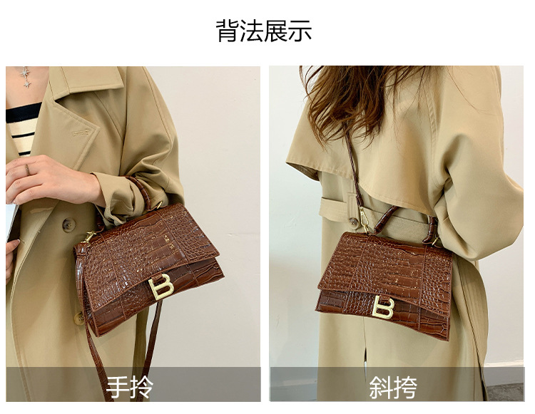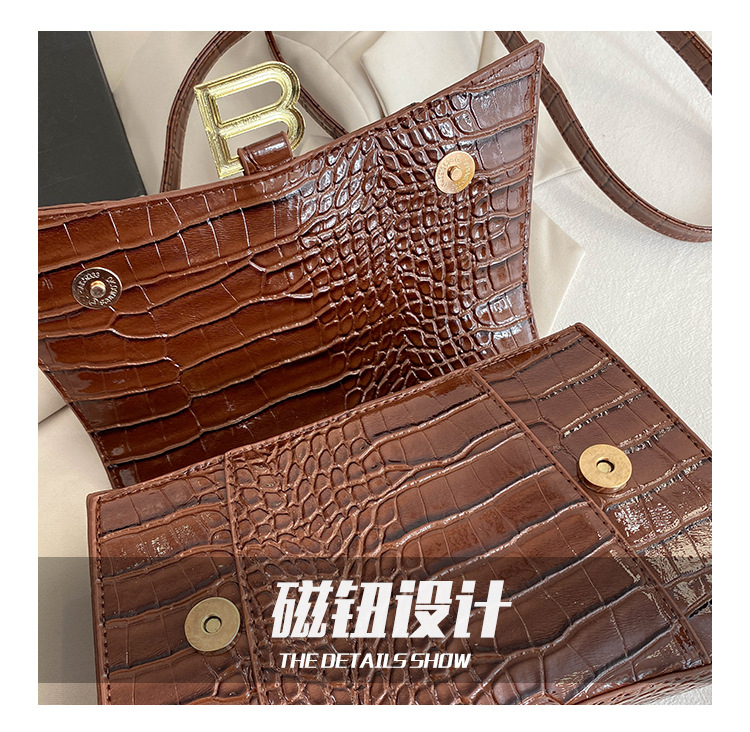 모래 시계 가방 여성용 2023 크로스 보더 새로운 패션 악어 패턴 휴대용 작은 사각형 가방 우아한 어깨 크로스 바디 가방