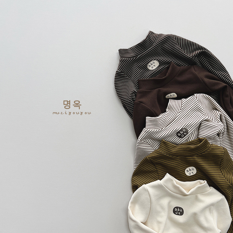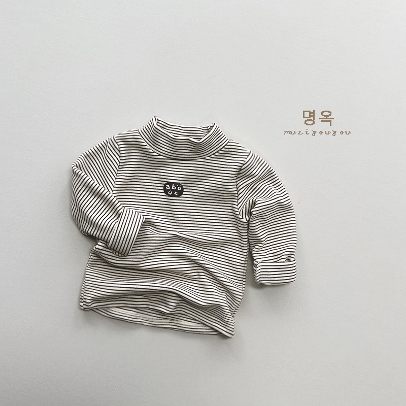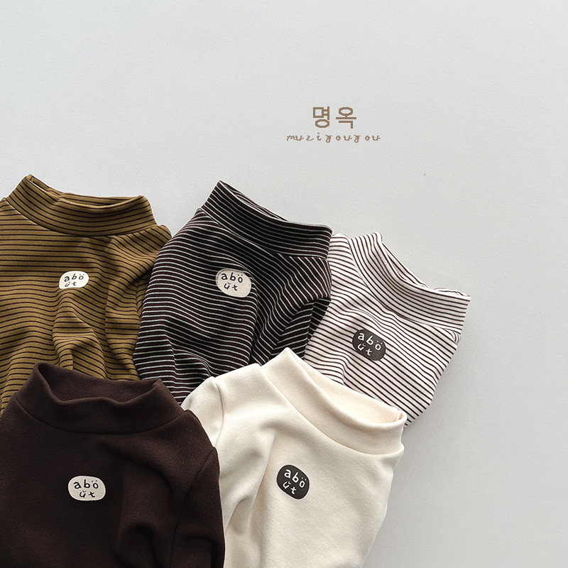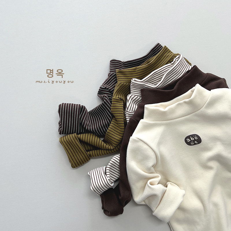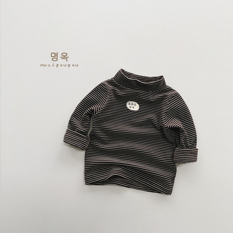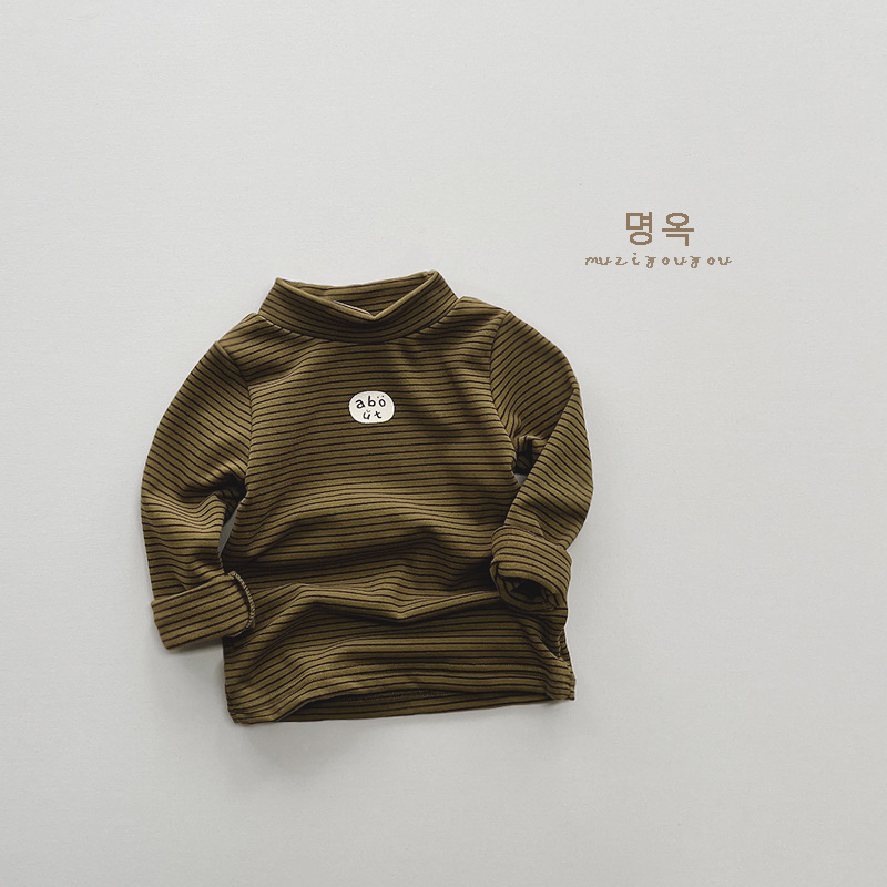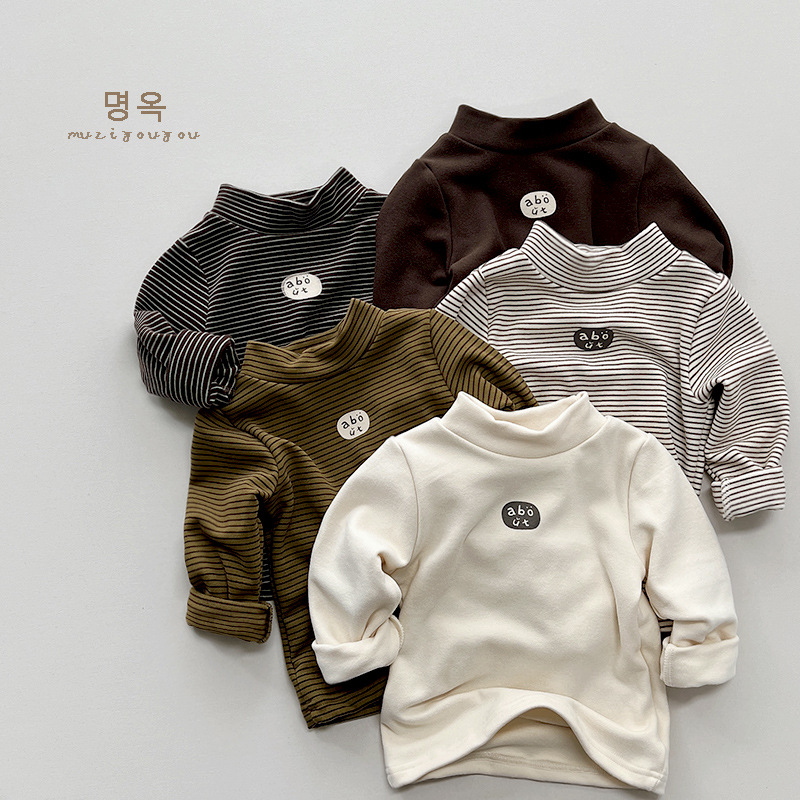 따뜻한 모든 경기 아동 기모 베이스 셔츠 남아 스트라이프 프린트 모리 스타일 탑 여아 한국 유행 아동복 겨울