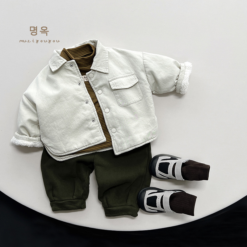 따뜻한 모든 경기 아동 기모 베이스 셔츠 남아 스트라이프 프린트 모리 스타일 탑 여아 한국 유행 아동복 겨울스토어 가기