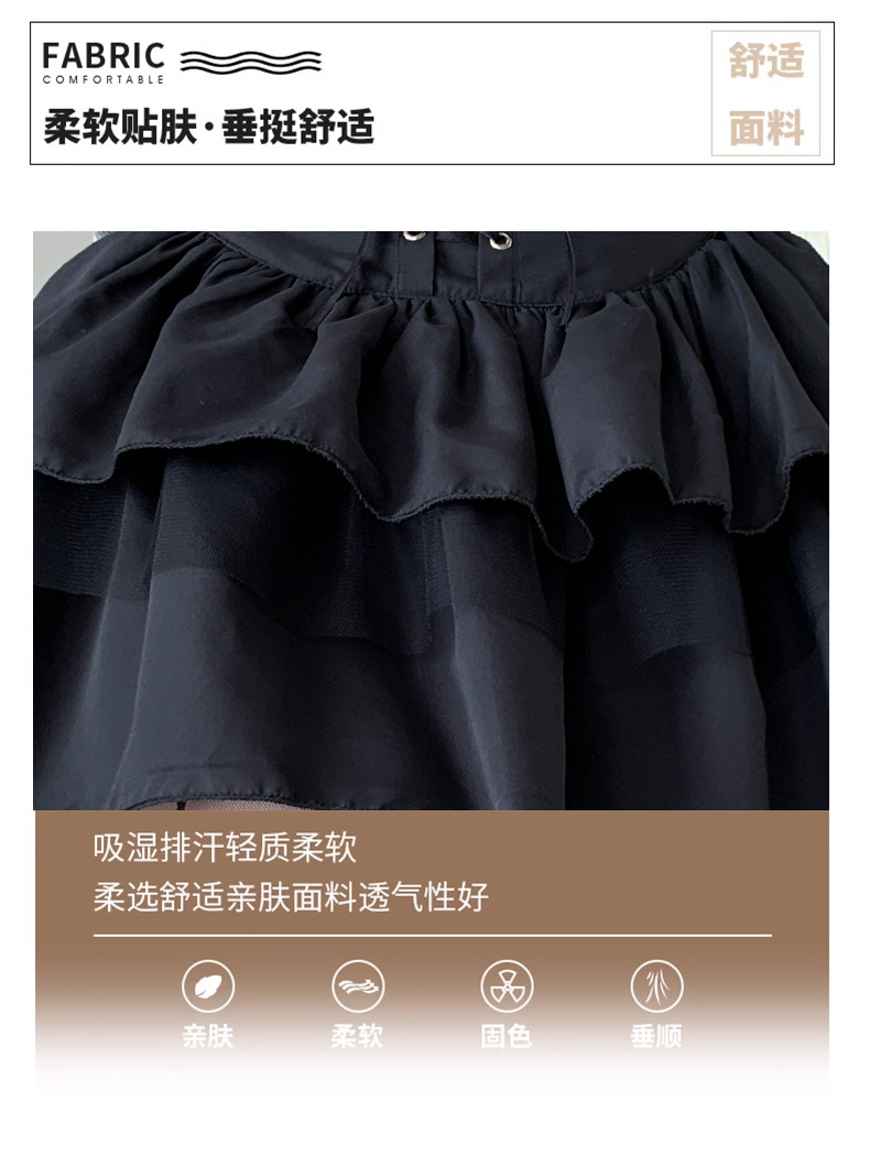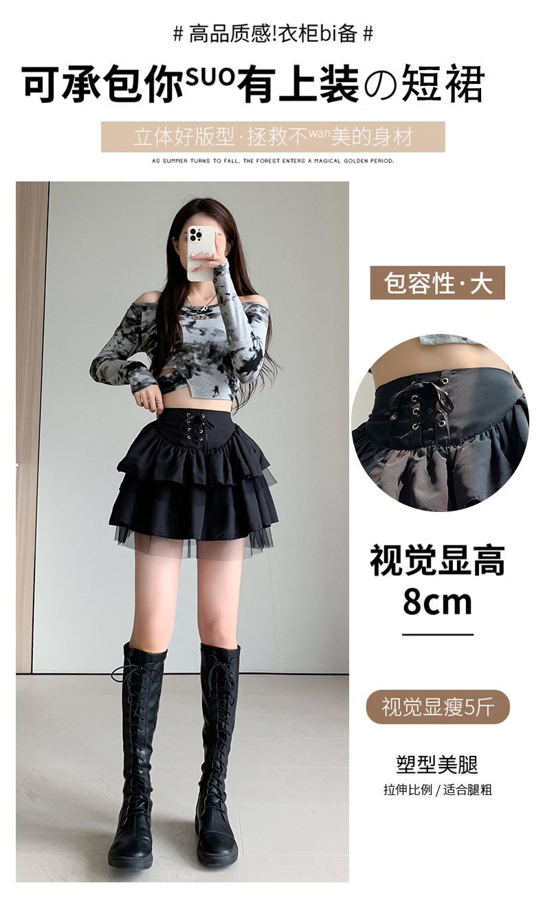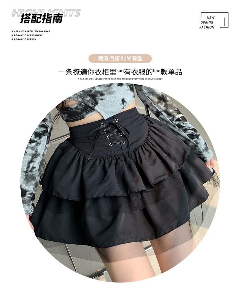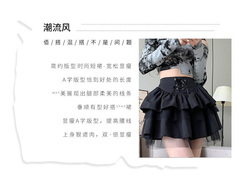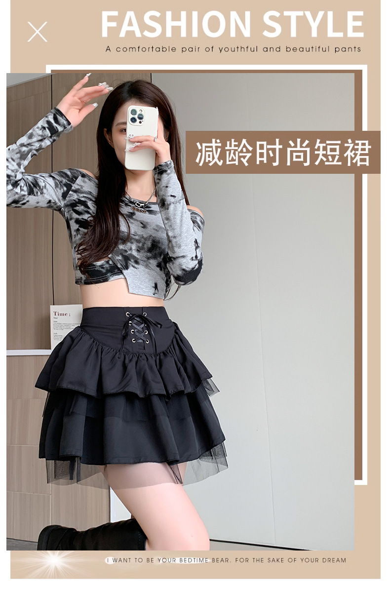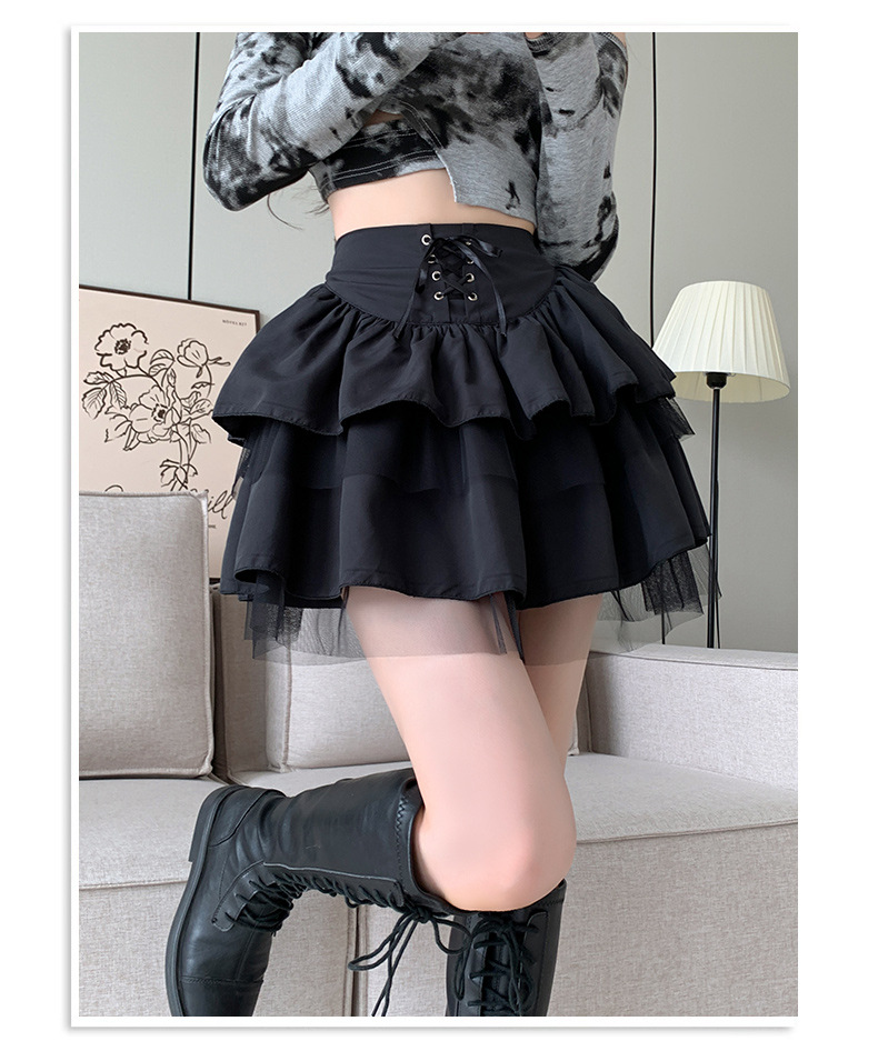치마 여자의 봄과 가을 새로운 발레 스타일의 푹신한 짧은 치마 하이 웨이스트 메쉬 작은 검정 레이스 업 일본 jk스토어 가기