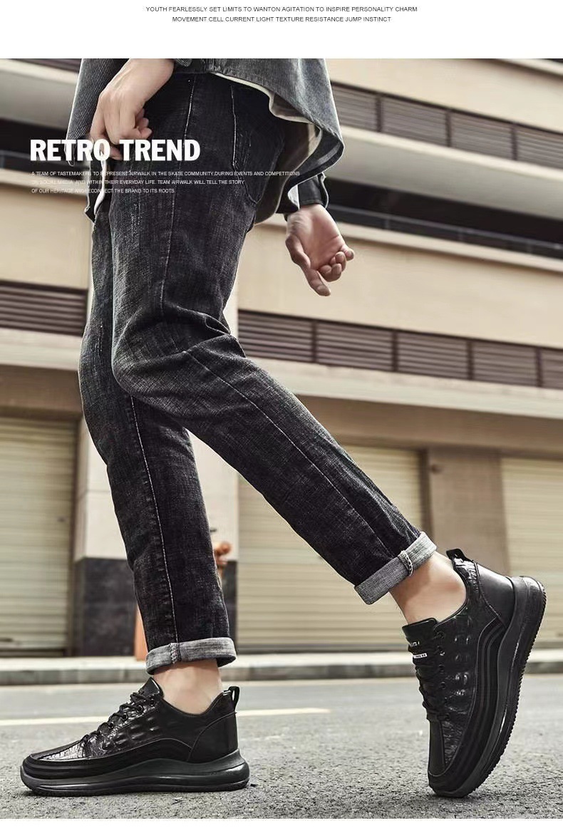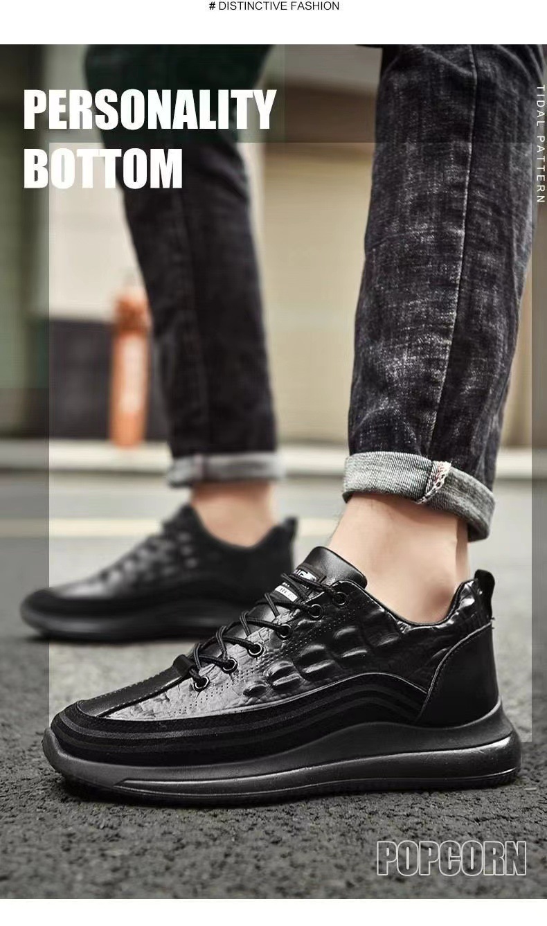 남자 신발 가을과 겨울 야외 에어 쿠션 부드러운 바닥 캐주얼 운동화 영국 스타일 악어 패턴 캐주얼 신발 운동화