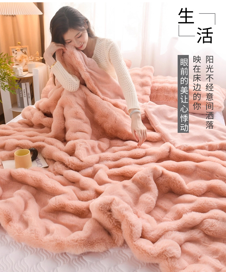 겨울 빛 럭셔리 토끼 벨벳 담요 두꺼운 양면 벨벳 침실 담요 고급 토끼 봉제 침구 낮잠 담요
