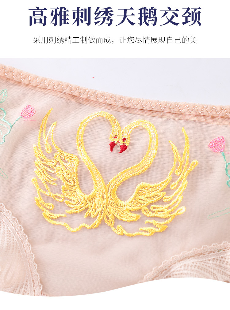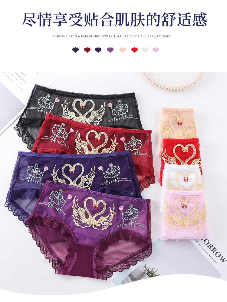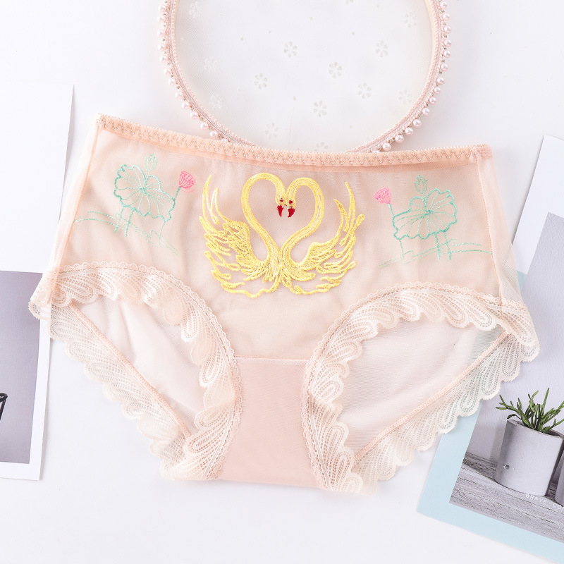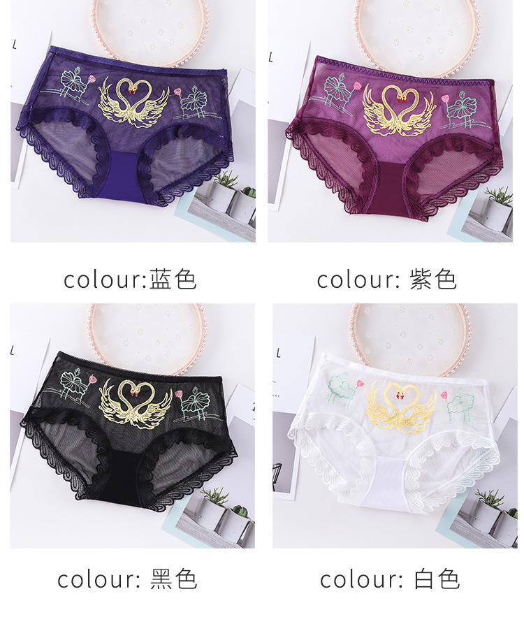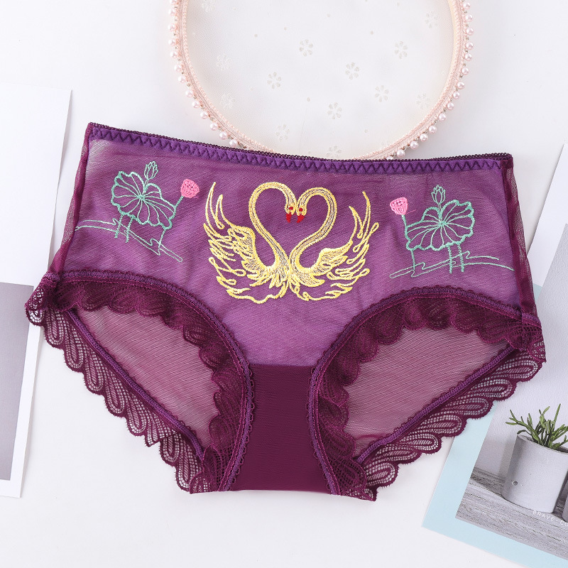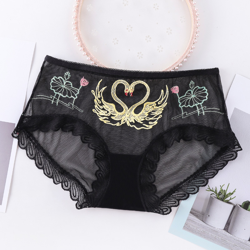 섹시한 메쉬 자수 속옷 통기성 힙 랩 더블 레이어 수분 흡수 면 바닥 가랑이 레이스 커프 컬링 팬티