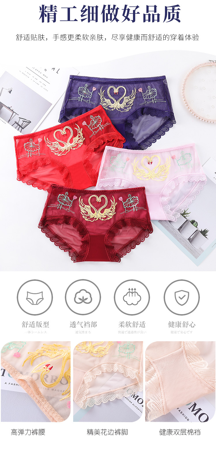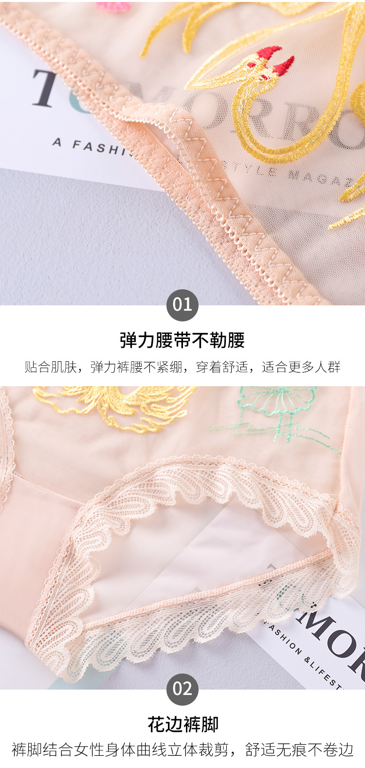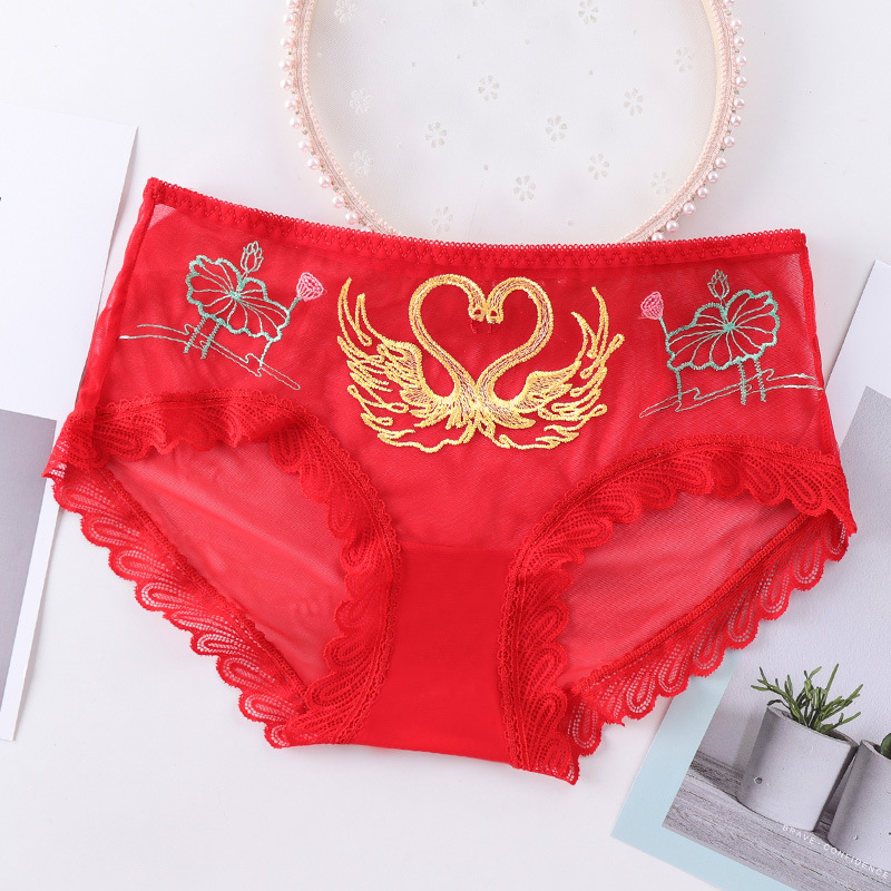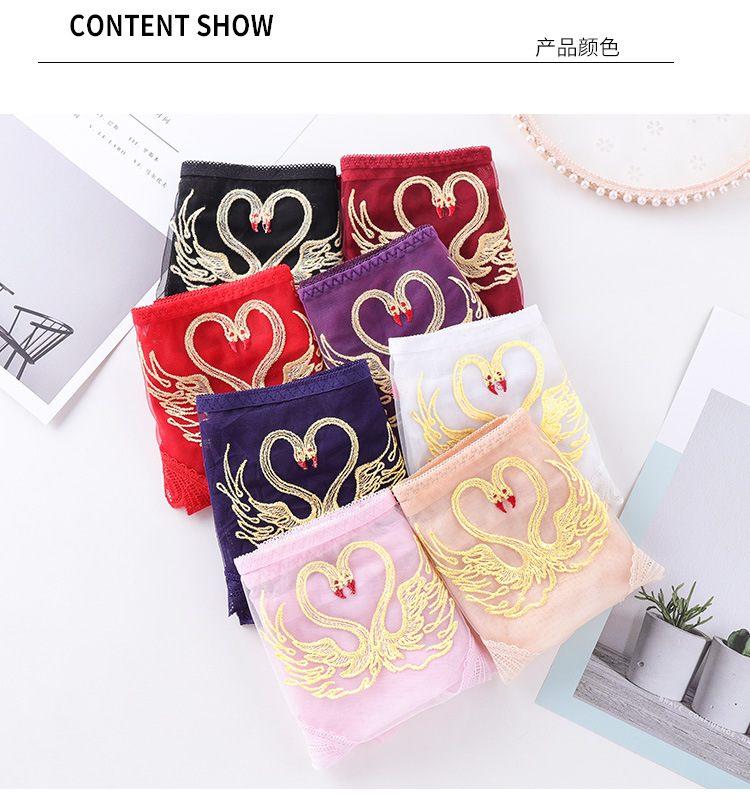섹시한 메쉬 자수 속옷 통기성 힙 랩 더블 레이어 수분 흡수 면 바닥 가랑이 레이스 커프 컬링 팬티
