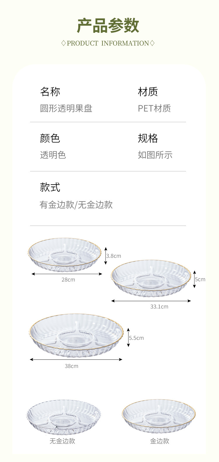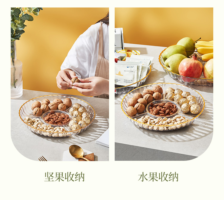 투명 PET 3 부 과일 접시 베이스 높은 과일 접시 간식 접시 말린 과일 접시 KTV 레스토랑