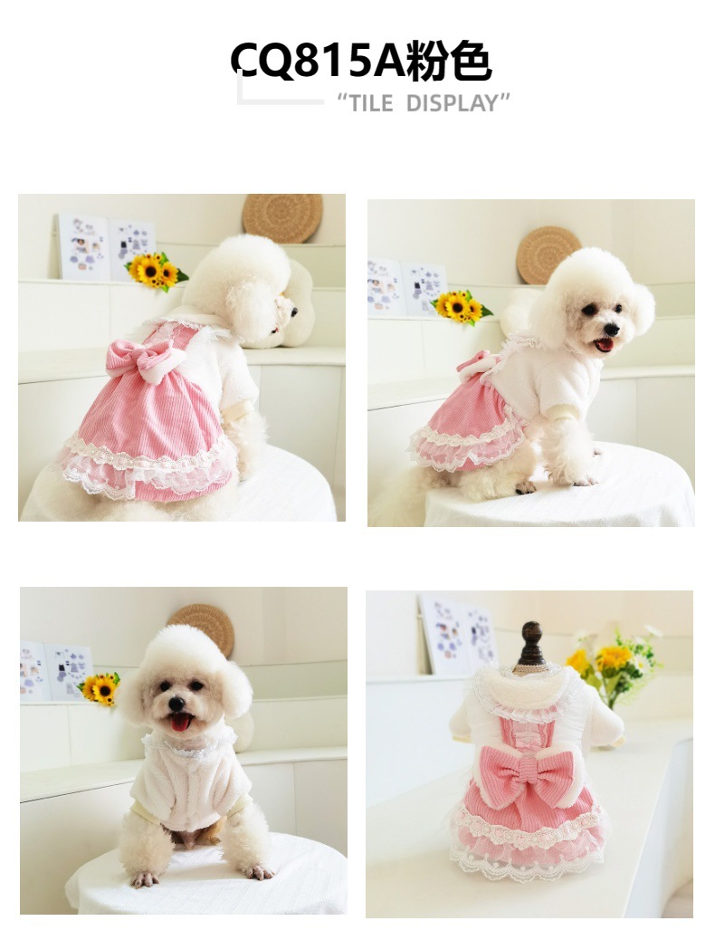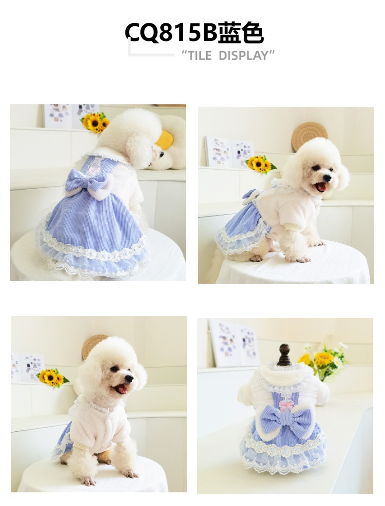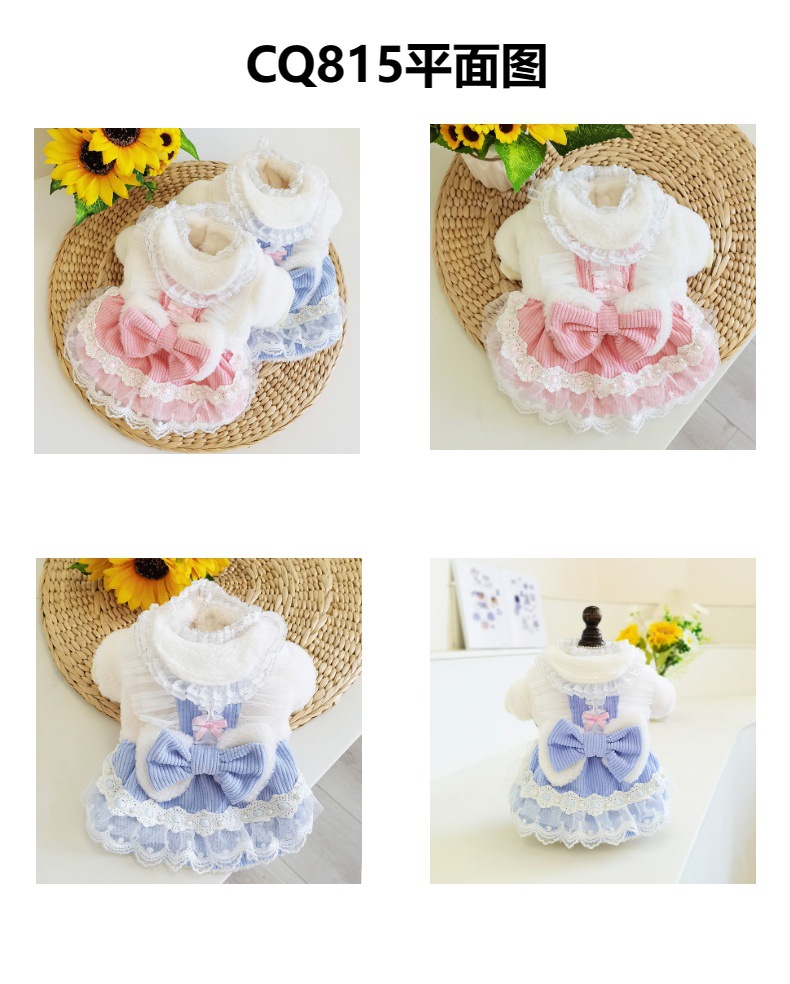 CQ815 더블 레이어 나비 레이스 겨울 원피스 더블 레이어 "귀여운 슈퍼 귀여운 애완 동물 의류 개 옷]