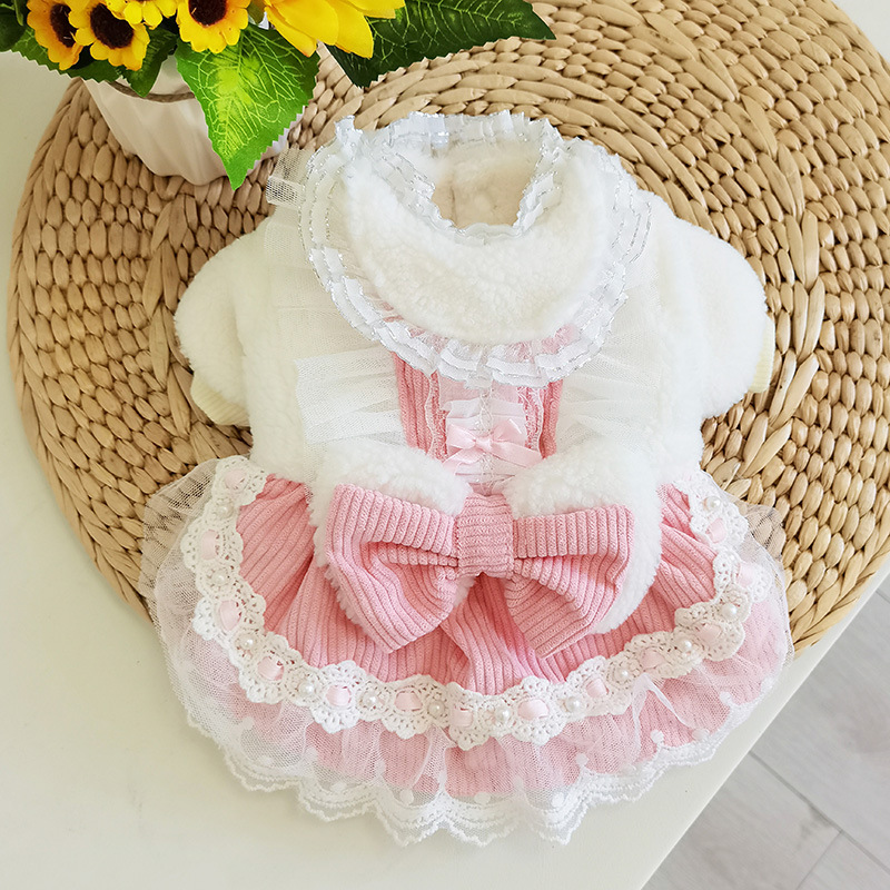 CQ815 더블 레이어 나비 레이스 겨울 원피스 더블 레이어 "귀여운 슈퍼 귀여운 애완 동물 의류 개 옷]스토어 가기