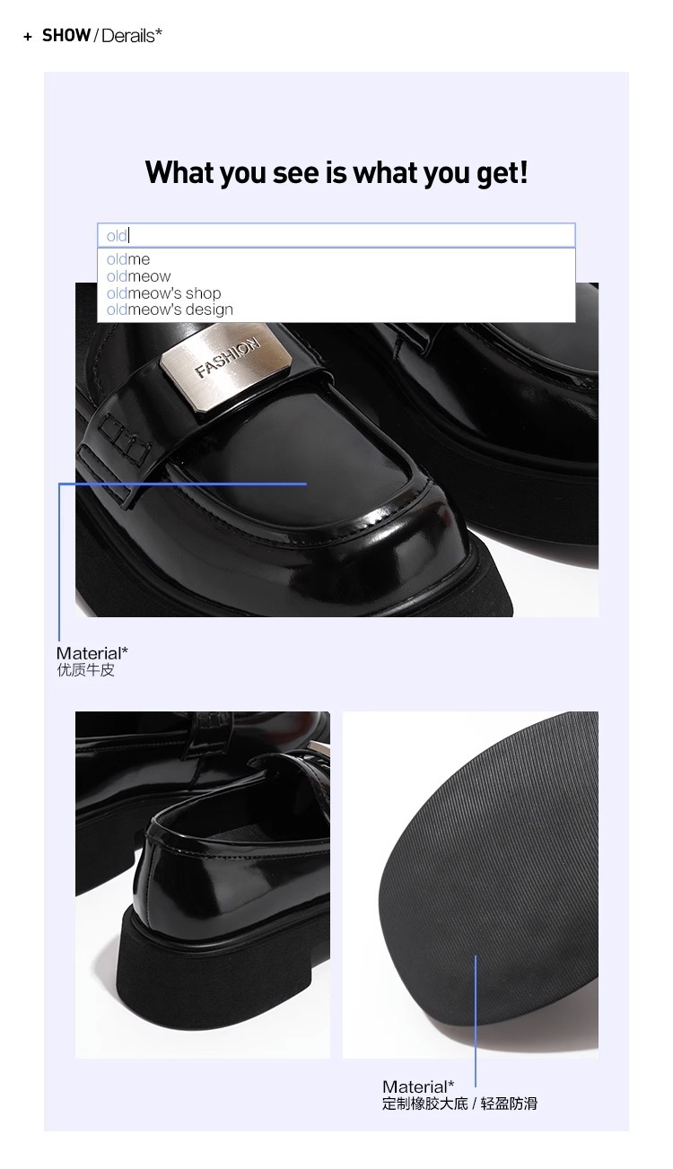 올드 야옹의 가게 가죽 두꺼운 바닥 로퍼 여성용 2023 새로운 가을 모든 경기 영국 스타일 블랙 작은 가죽 신발 싱글 신발스토어 가기