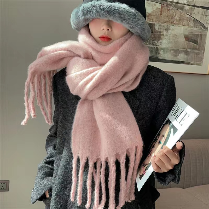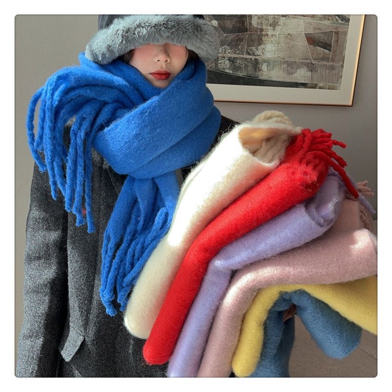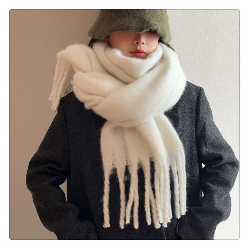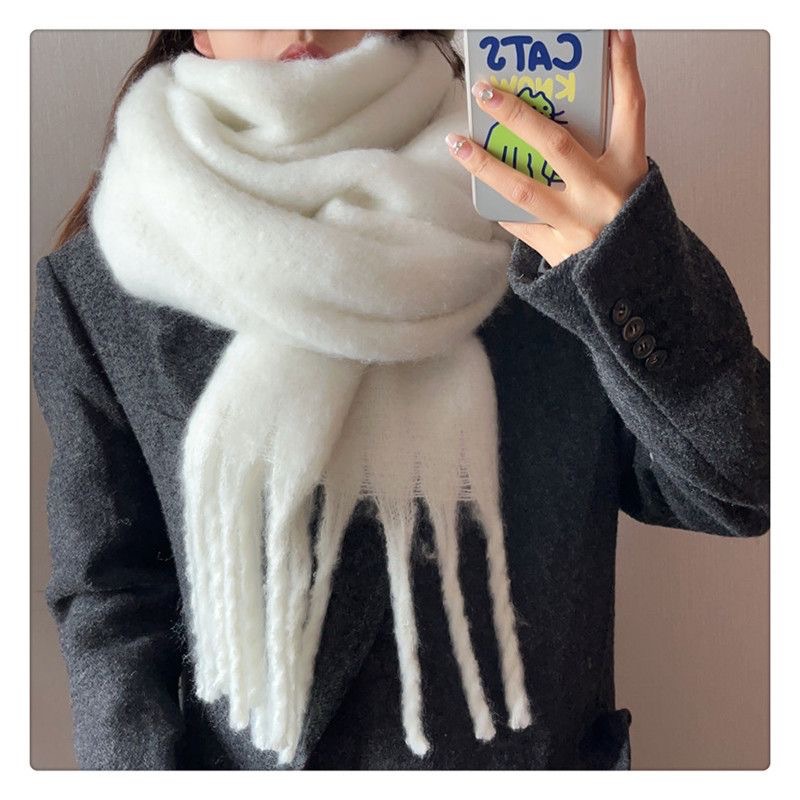 스카프 여성용 겨울 단색 모헤어 두꺼운 새로운 하이 엔드 센스 화이트 모든 매치 게으른 숄 목 따뜻한 패션스토어 가기