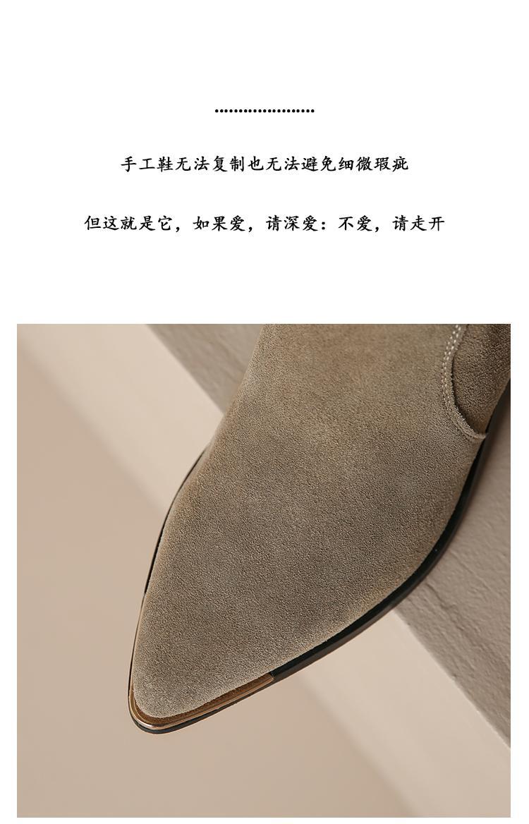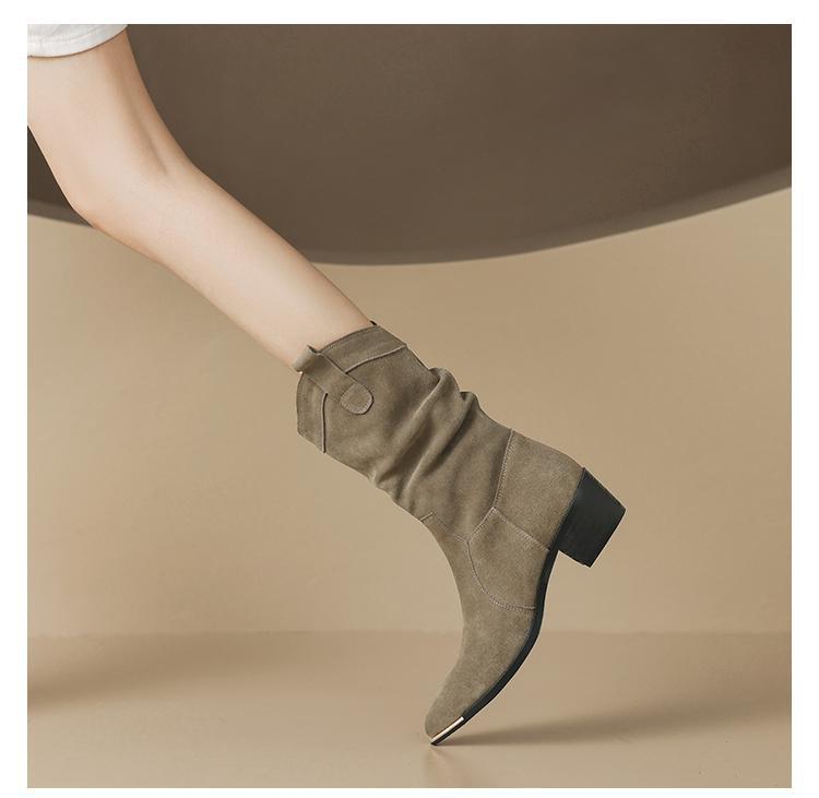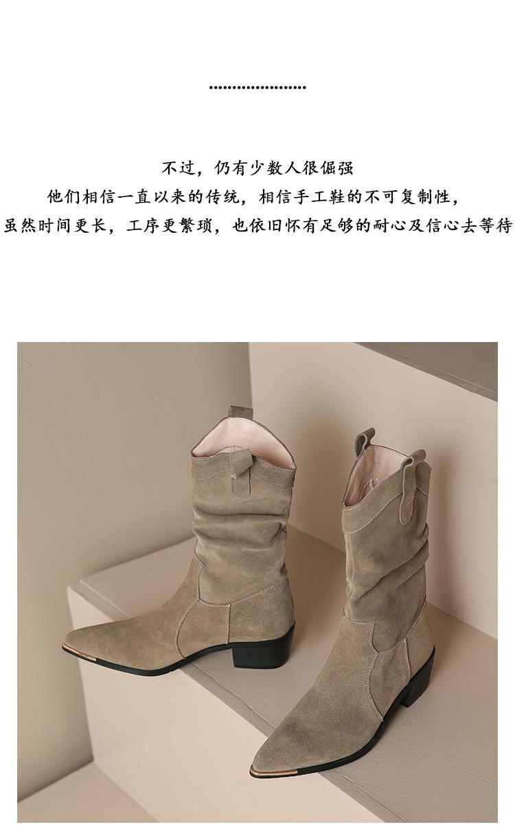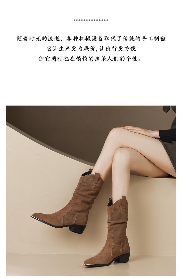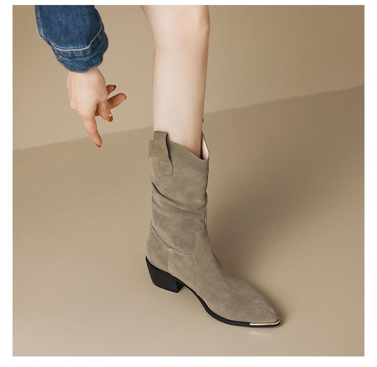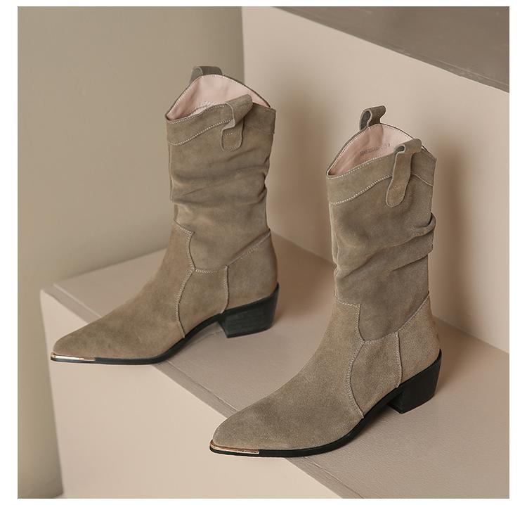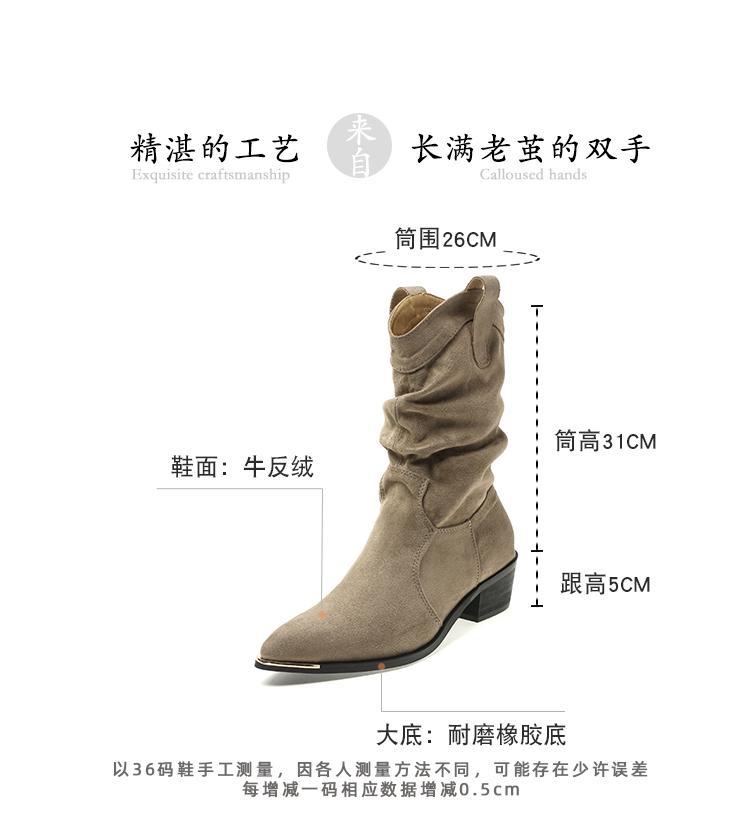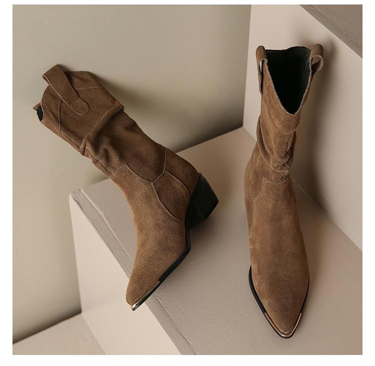 프로스트 정품 가죽 힙 부츠 여성용 2023 가을과 겨울 새로운 뾰족한 v-입 나이트 부츠 청키 힐 레트로 웨스턴 카우보이 부츠스토어 가기