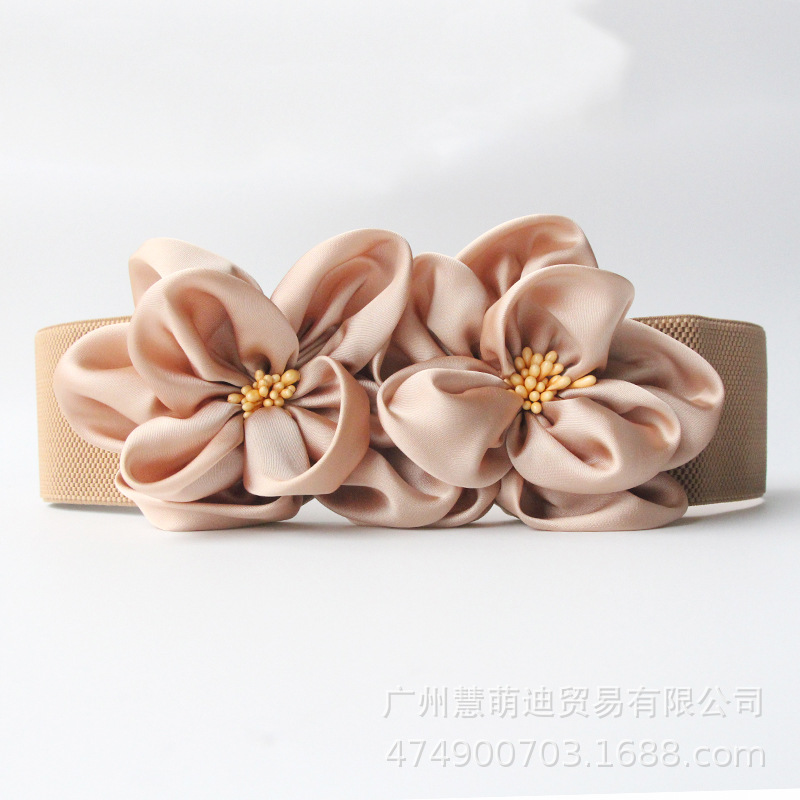 여성용 한국식 올 매치 벨트 여성용 쉬폰 빅 플라워 여성용 탄성 허리 커버 와이드 탄성 장식 스커트 번들 여성용 허리 장식