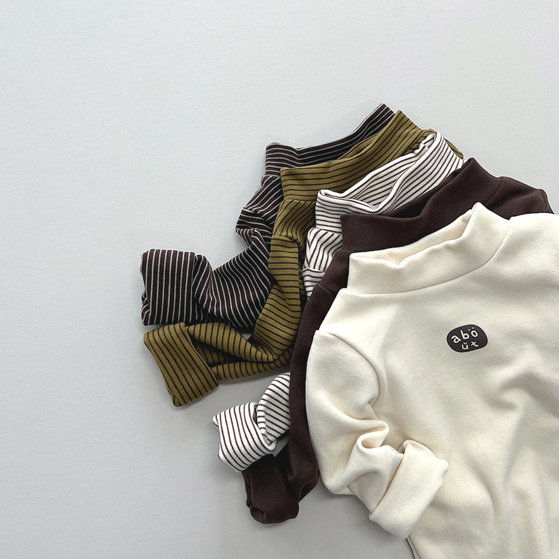 어린이 따뜻한 모든 매치 기모 베이스 셔츠 남아 스트라이프 프린트 모리 탑 여아 한국 유행 아동복 겨울스토어 가기