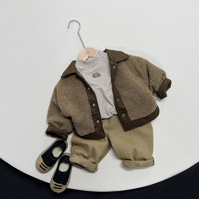 어린이 따뜻한 모든 매치 기모 베이스 셔츠 남아 스트라이프 프린트 모리 탑 여아 한국 유행 아동복 겨울