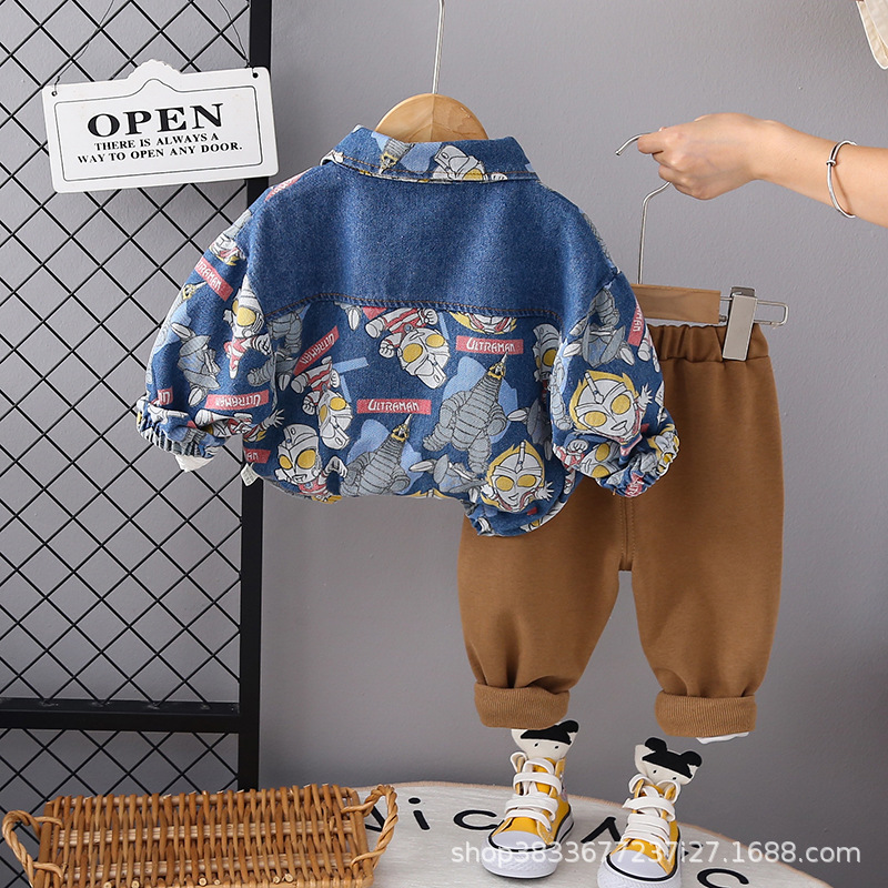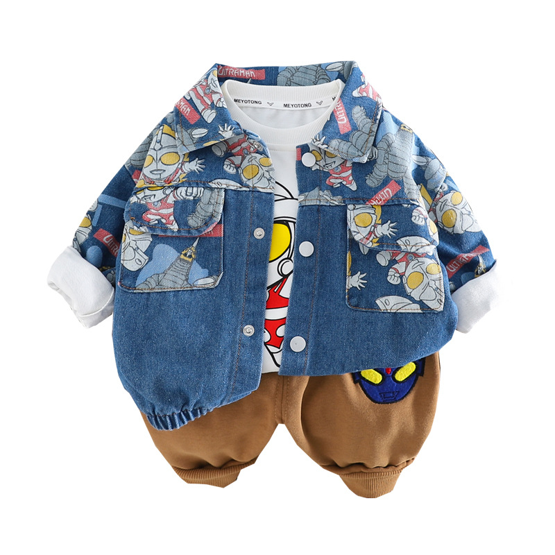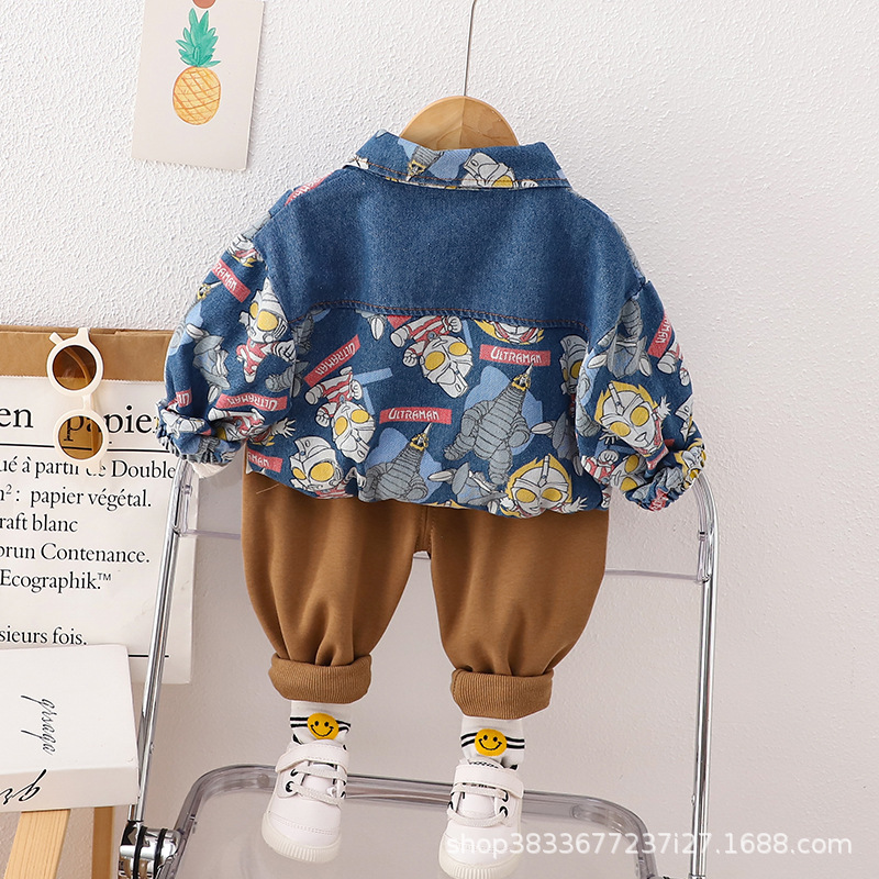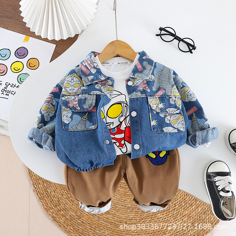 남자의 아동 의류 가을 세트 2023 새로운 Ruffian 잘 생긴 아동 의류 남자의 아기 autorman 데님 3 종 세트 도매스토어 가기