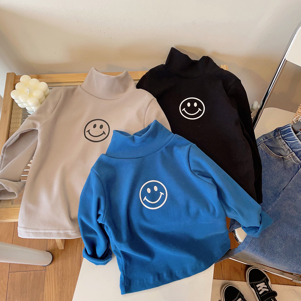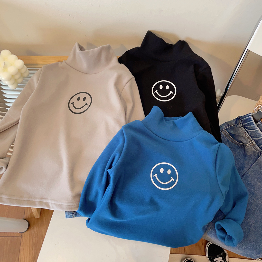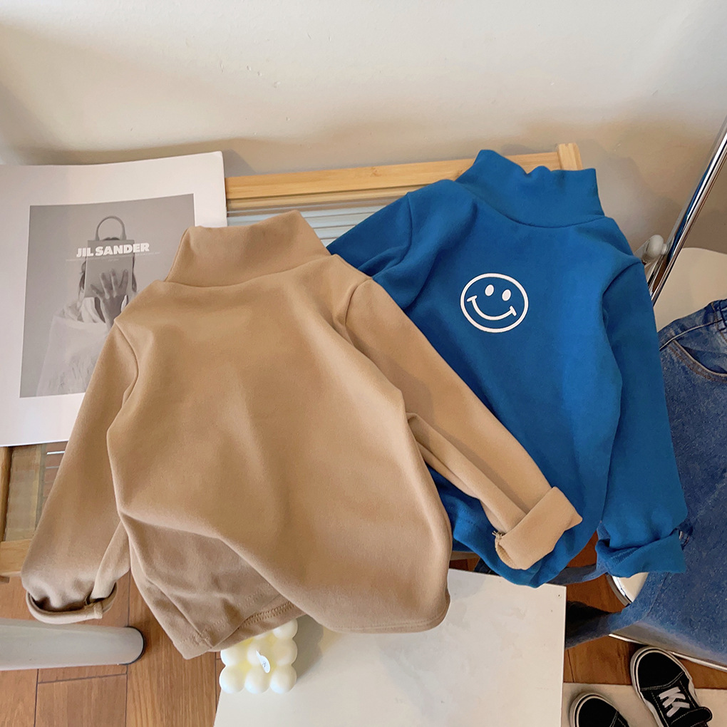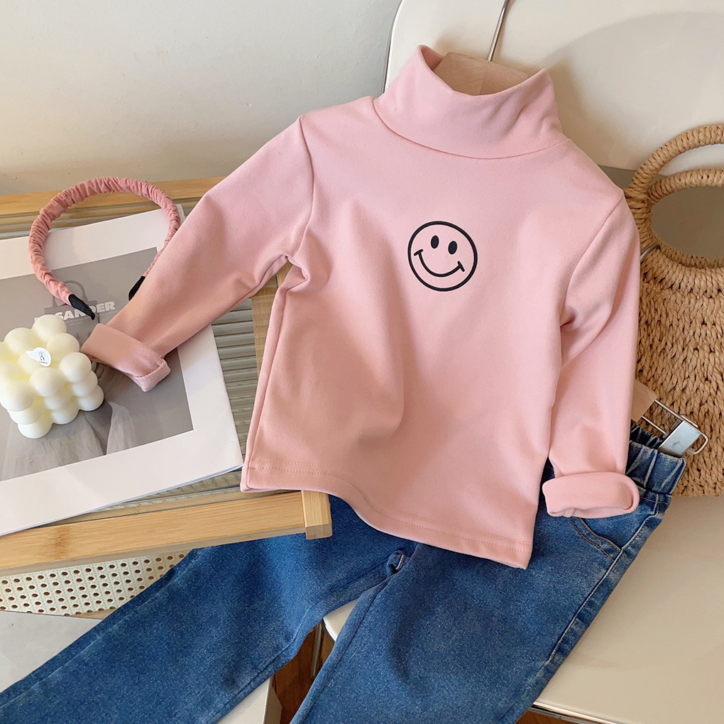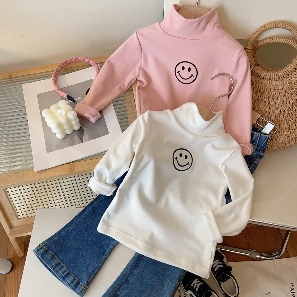 여아 벨벳베이스 셔츠 가을과 겨울 아동복 사이버 인기 아기 하프 하이 칼라 티셔츠 긴팔 스마일 두꺼운 어린이 탑