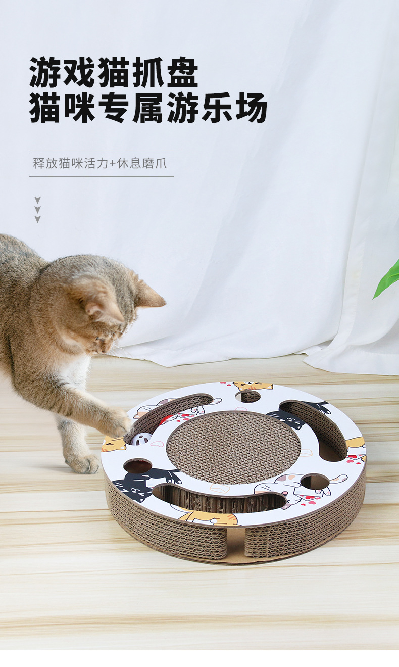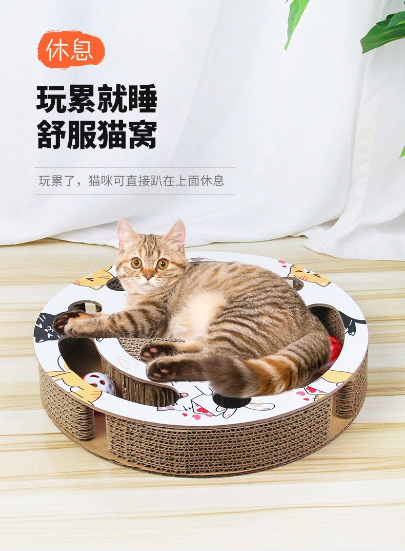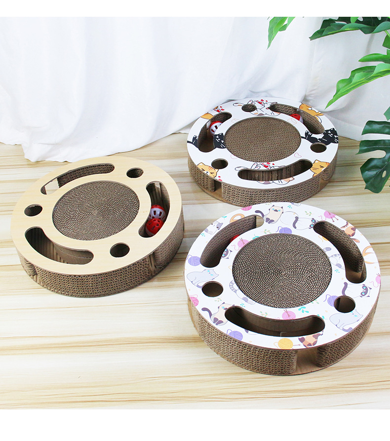 장난 꾸러기 둥지 원형 골판지 도자기 공 고양이 스크래치 보드 중공 벨 고양이 장난감 고양이 스크래치 보드 애완 동물 용품 도매