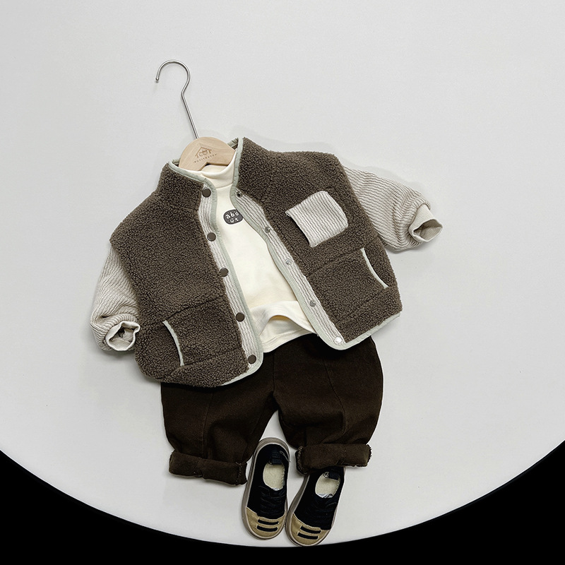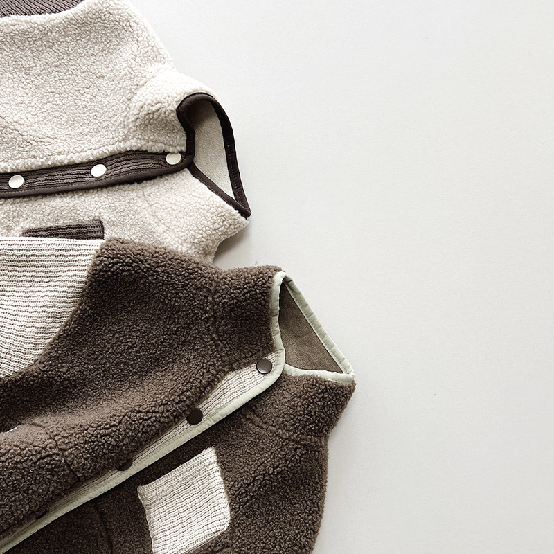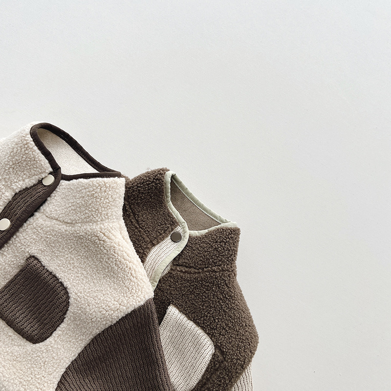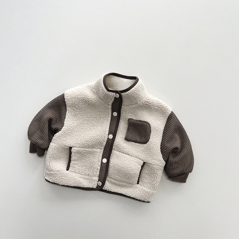 남아용 배색 플러시 재킷 2025 겨울 신상 여아용 중소 어린이 한국 스타일 따뜻하고 두꺼운 상의 트렌디스토어 가기
