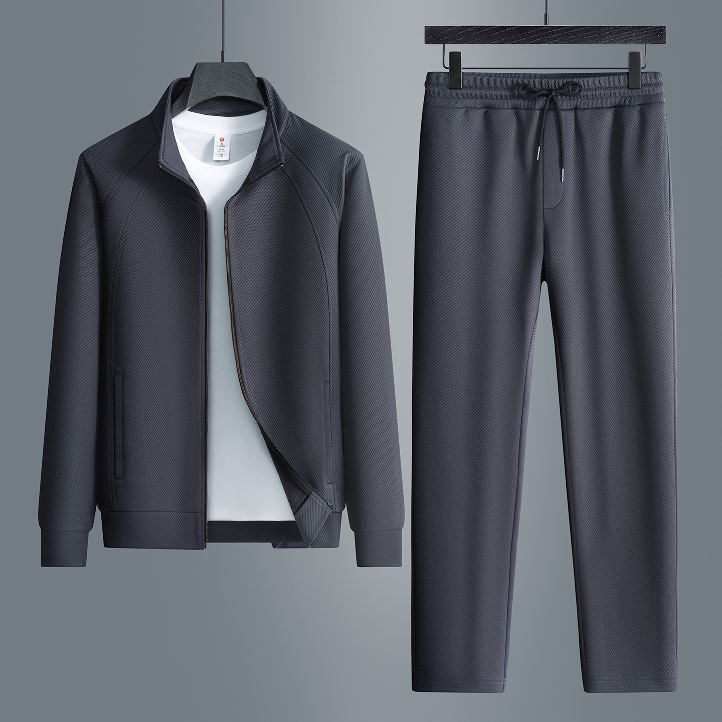 2025 봄, 가을 신상 남성 청년 및 중년 스타일 스탠드 칼라 지퍼 긴팔 가디건 바지 패셔너블 캐주얼 슈트스토어 가기