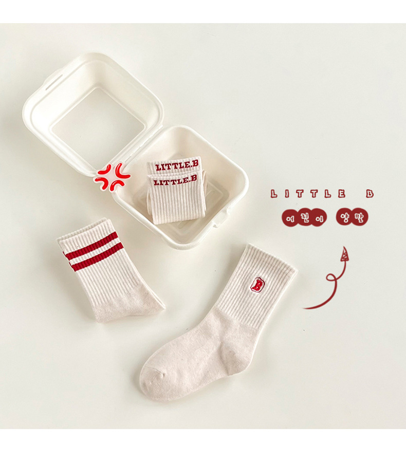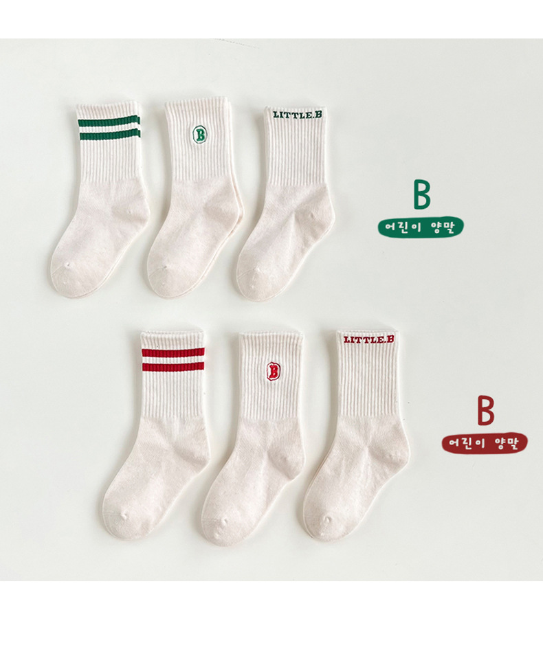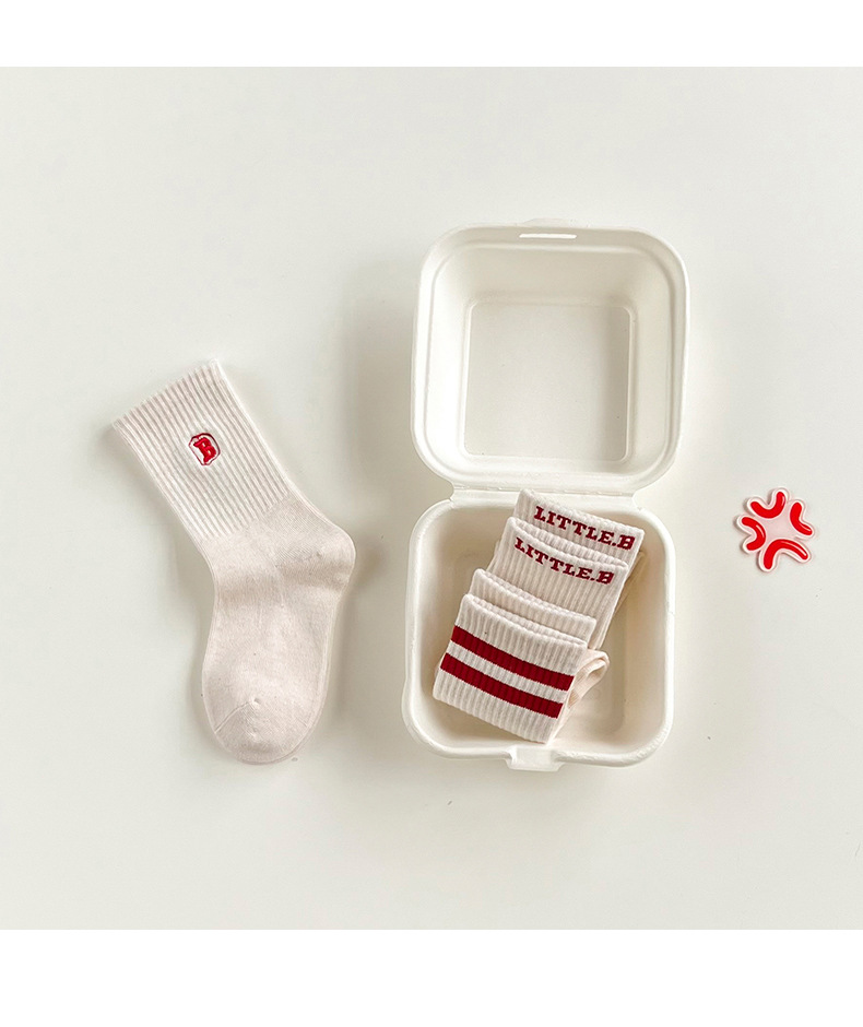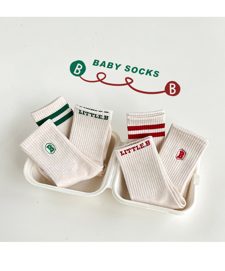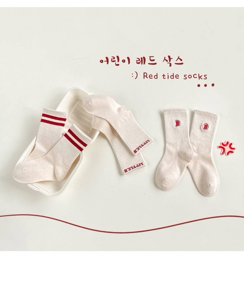 어린이 양말 봄과 가을 면 양말 한국 스타일 편지 줄무늬 여아 중간 길이 양말 가을과 겨울 학생 소년과 소녀를위한 유행 양말