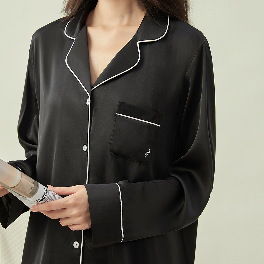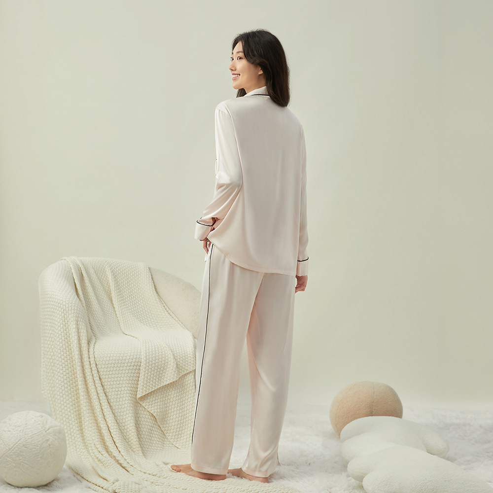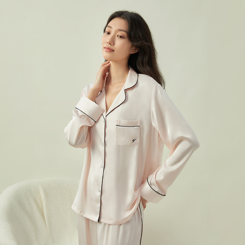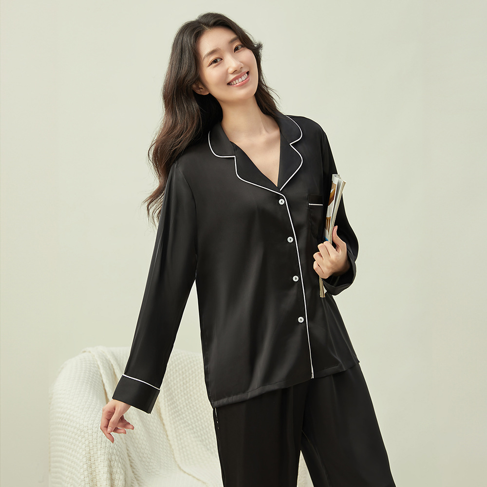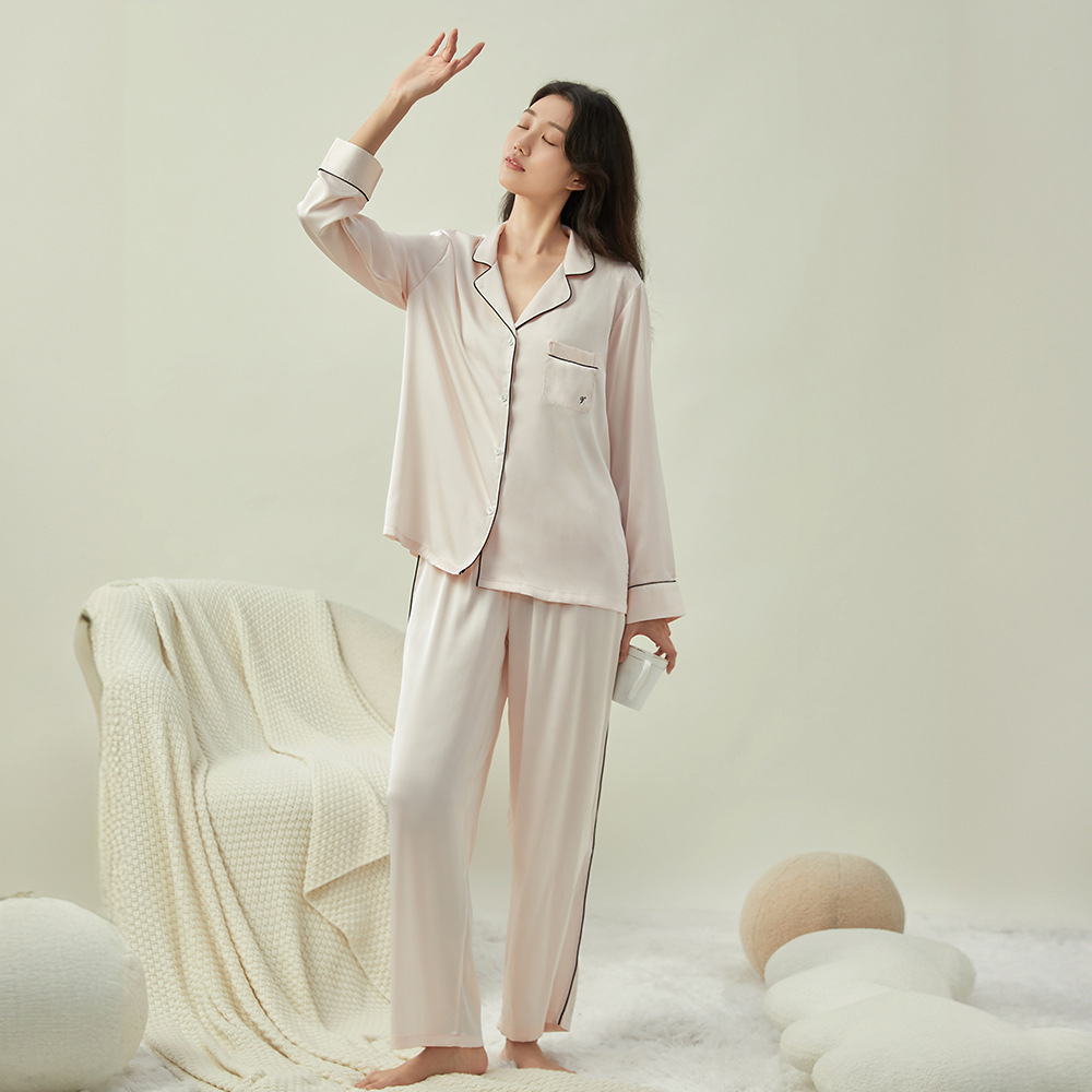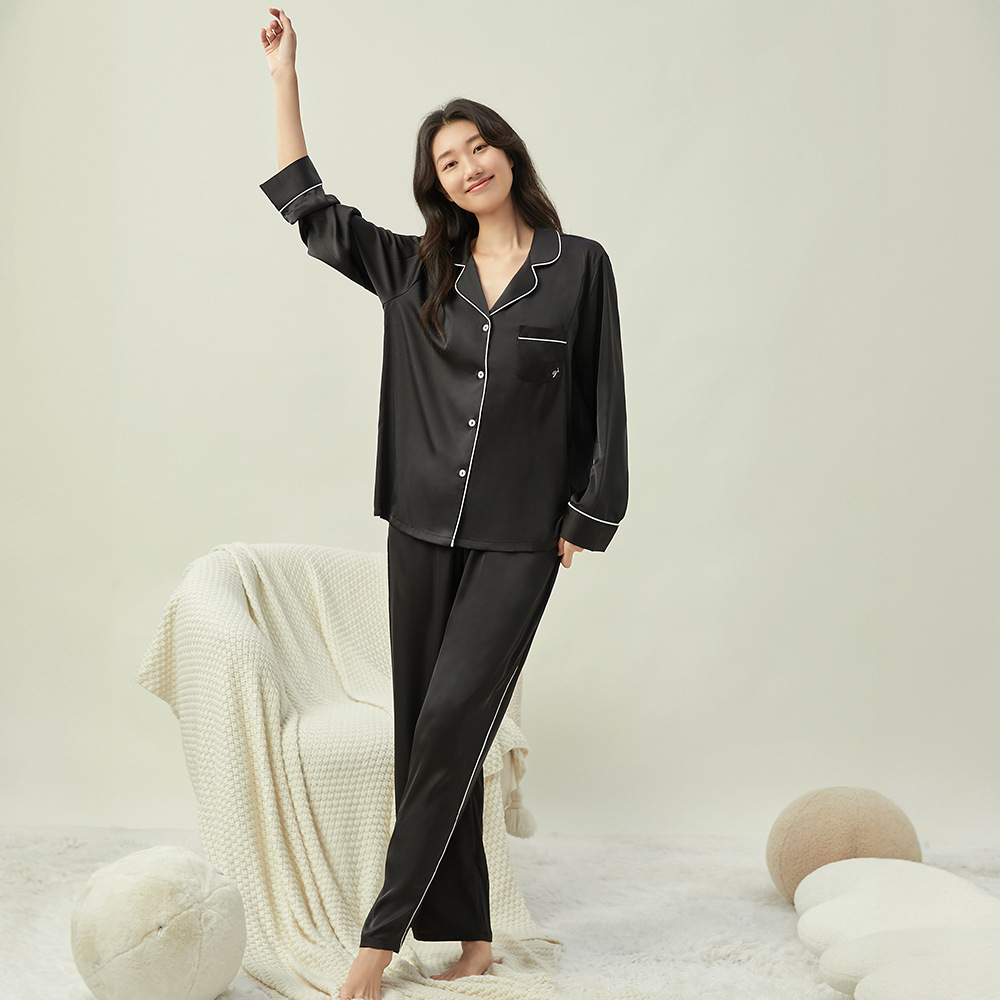 새로운 클래식 단색 잠옷 여성용 Пижама 홈 의류 긴 소매 바지 아이스 실크 편안한 간단한 세트