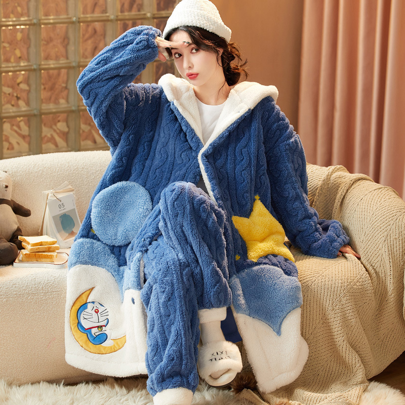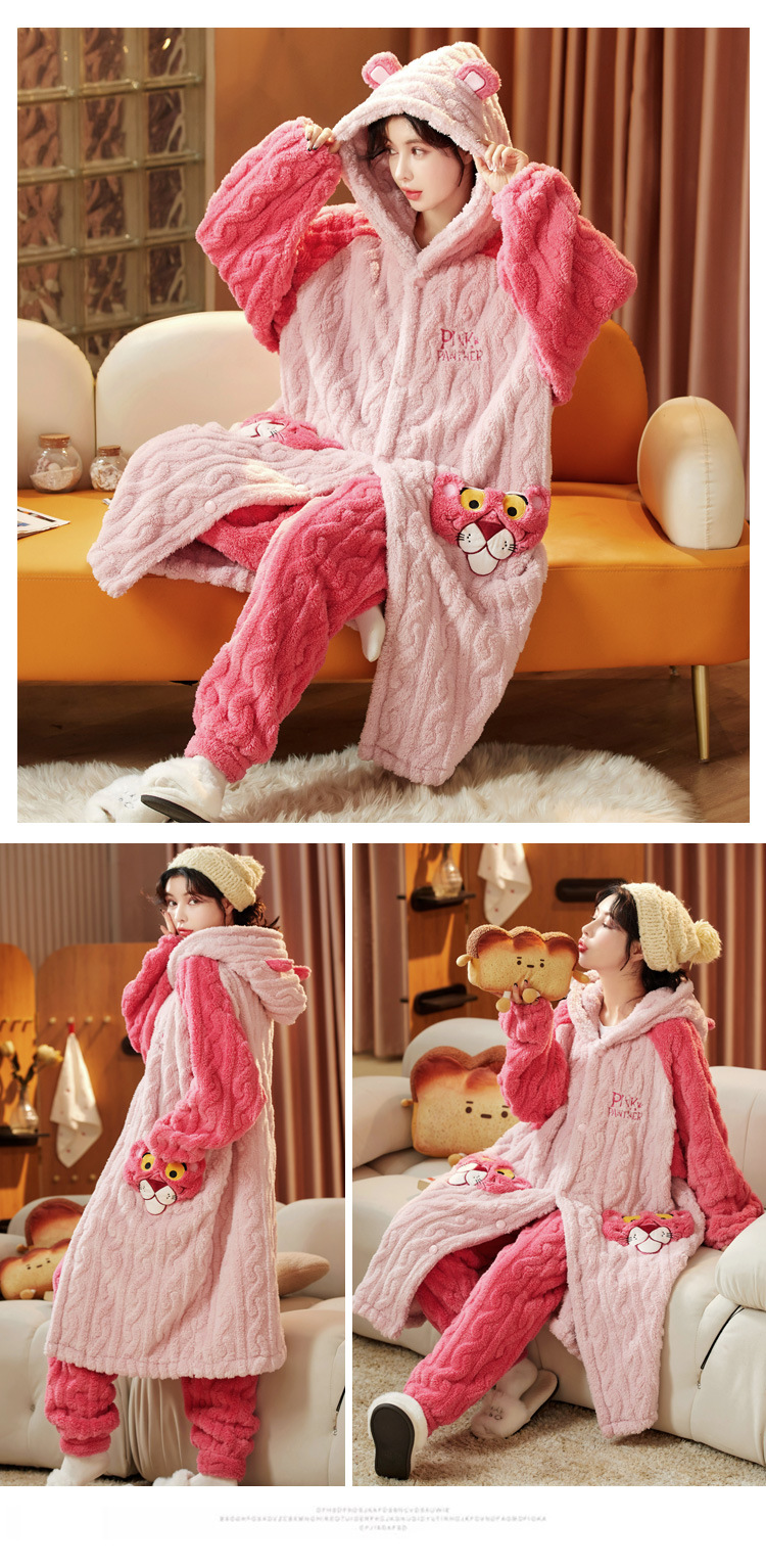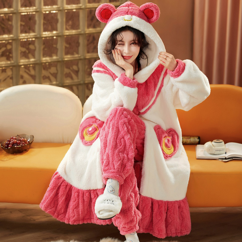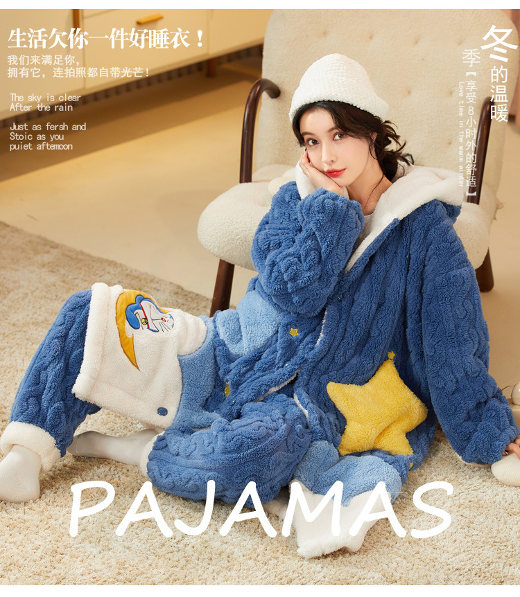잠옷 여자의 겨울 산호 양털 두꺼운 기모 긴 여자의 만화 가을과 겨울 플란넬 잠옷 가정 옷 세트스토어 가기