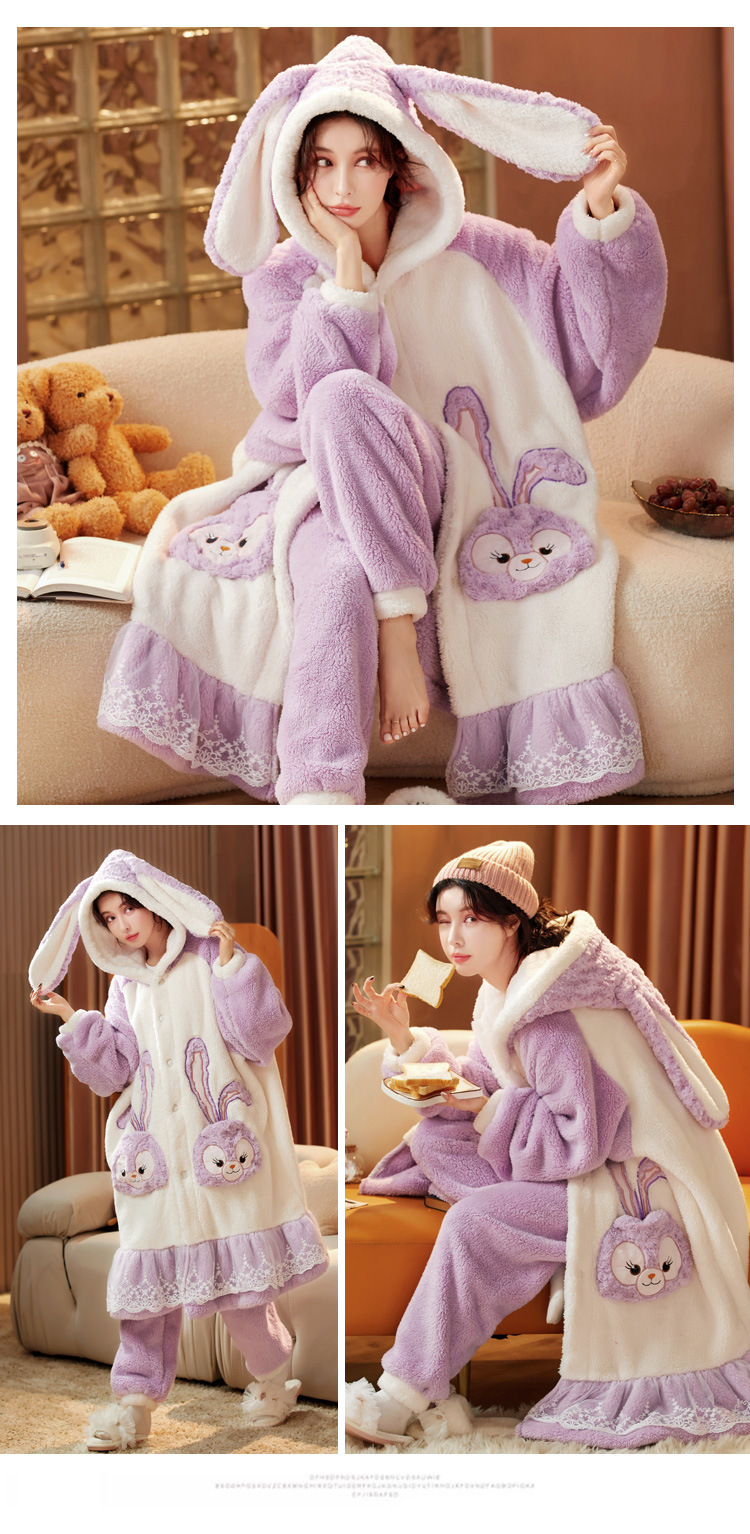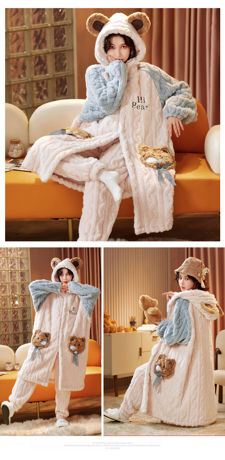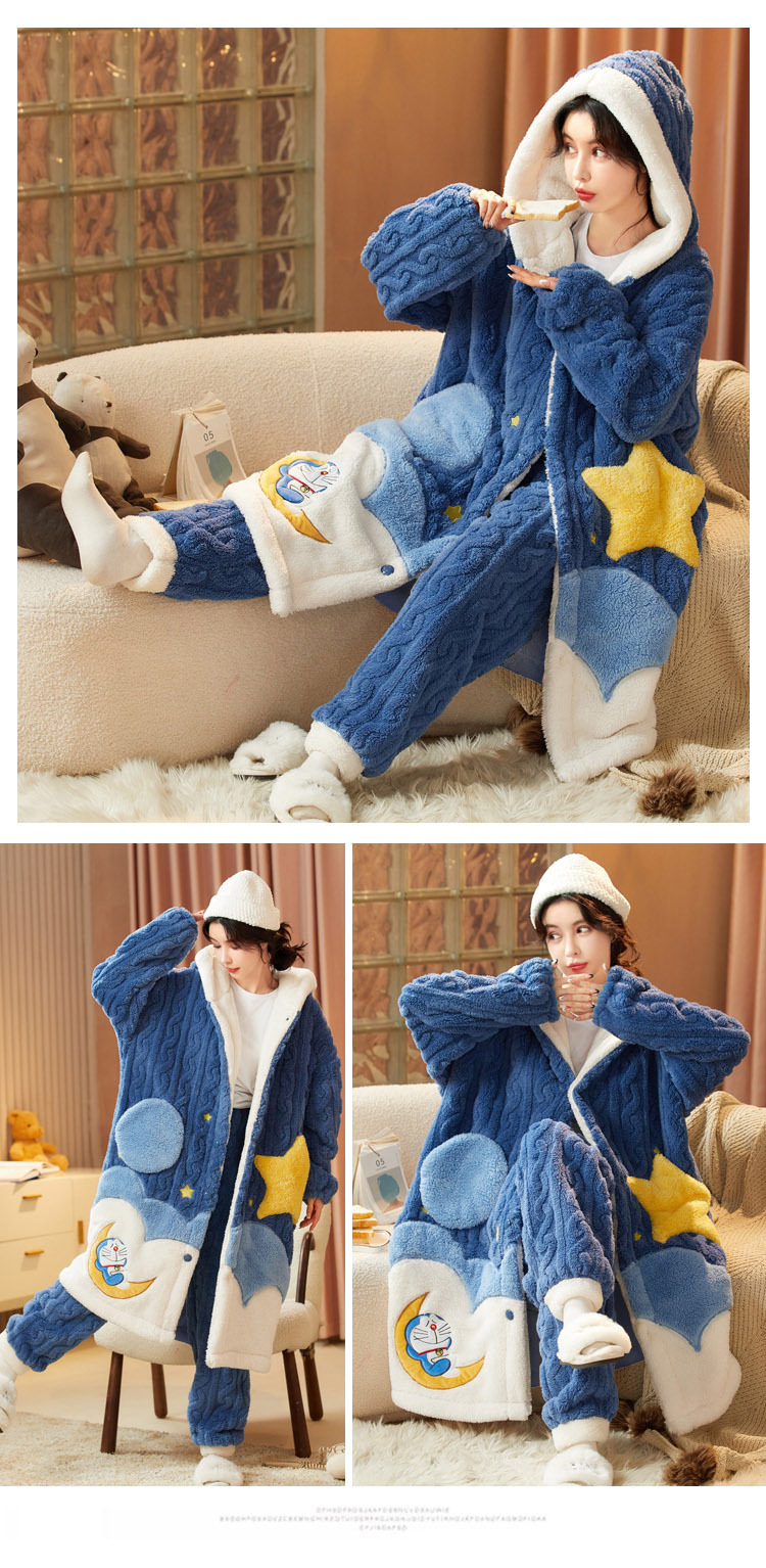 잠옷 여자의 겨울 산호 양털 두꺼운 기모 긴 여자의 만화 가을과 겨울 플란넬 잠옷 가정 옷 세트스토어 가기