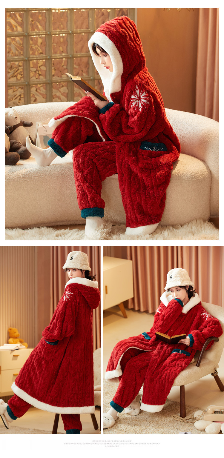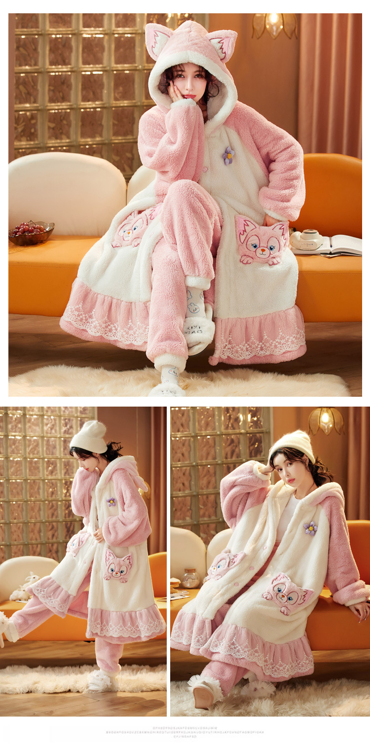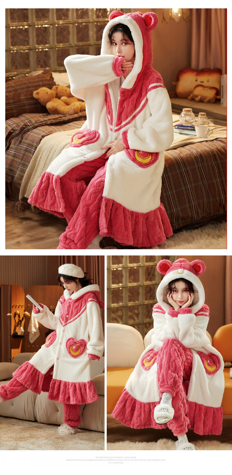 잠옷 여자의 겨울 산호 양털 두꺼운 기모 긴 여자의 만화 가을과 겨울 플란넬 잠옷 가정 옷 세트