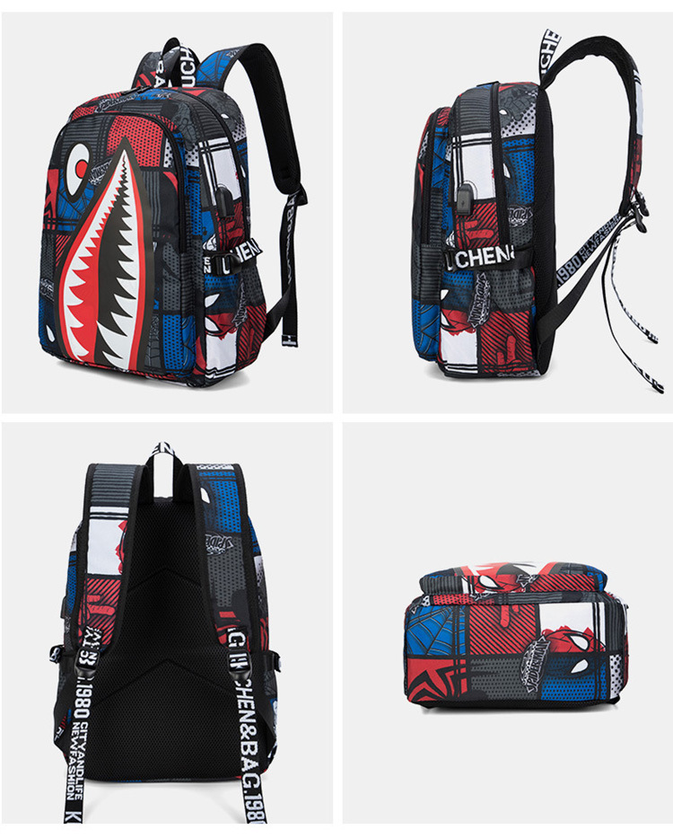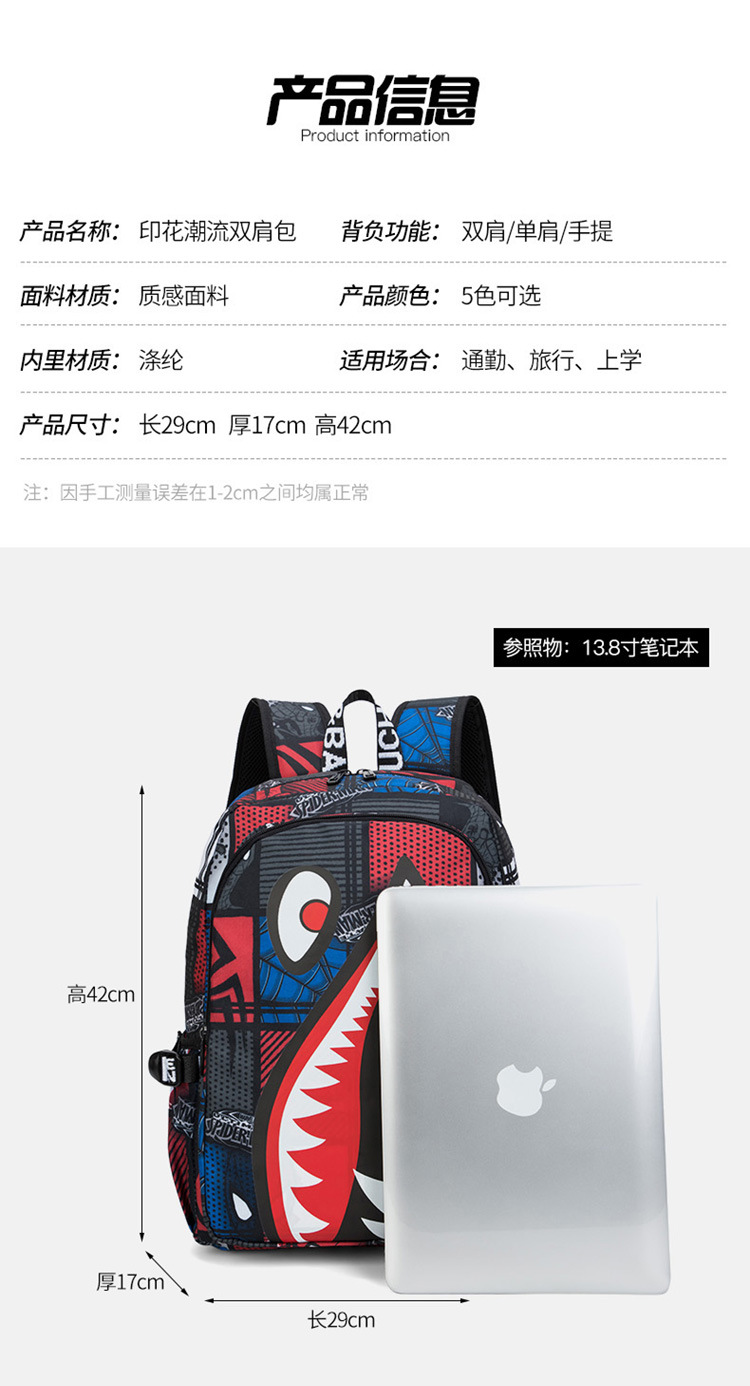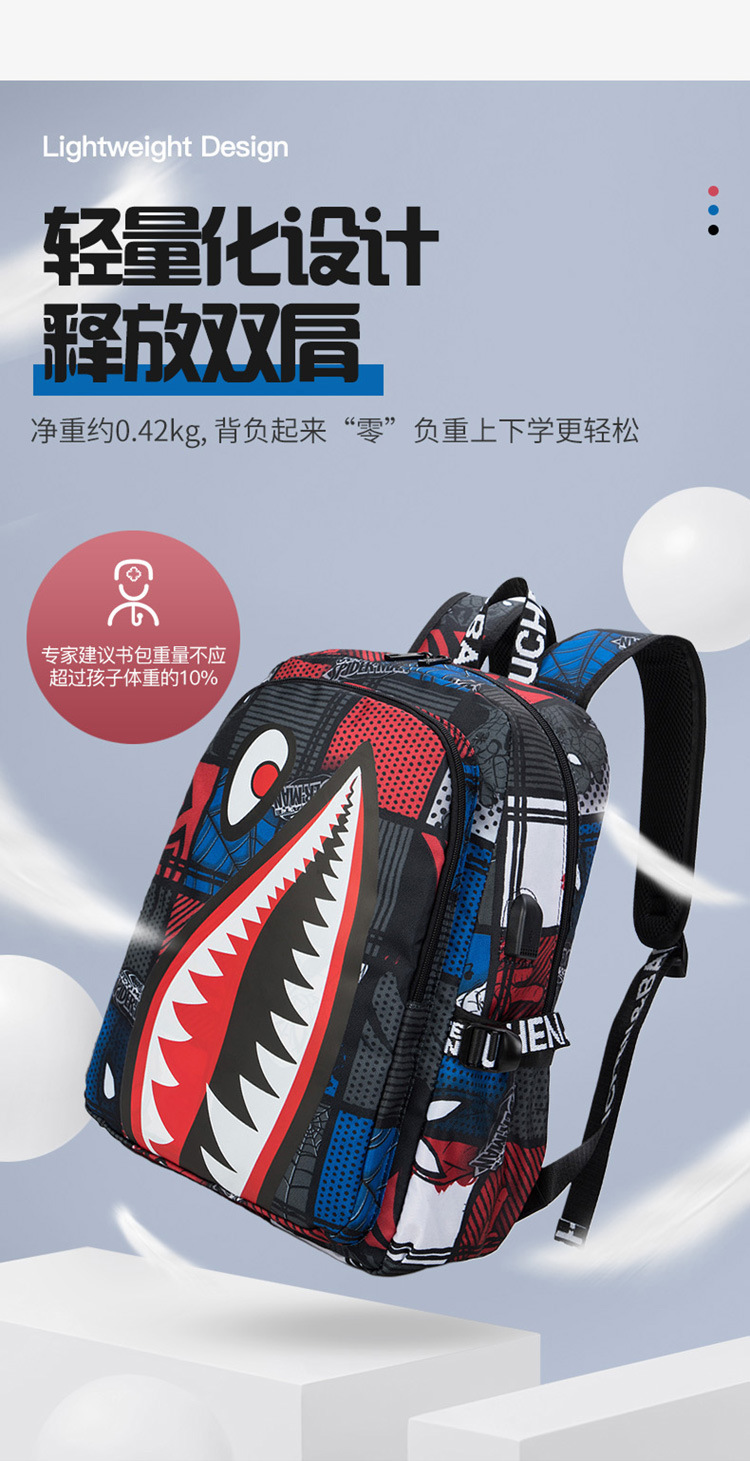 스쿨백 남성과 초등학교 어린이 3 ~ 6 학년 경량 배낭 유행 대용량 맞춤형 상어 더블 배낭 트렌디