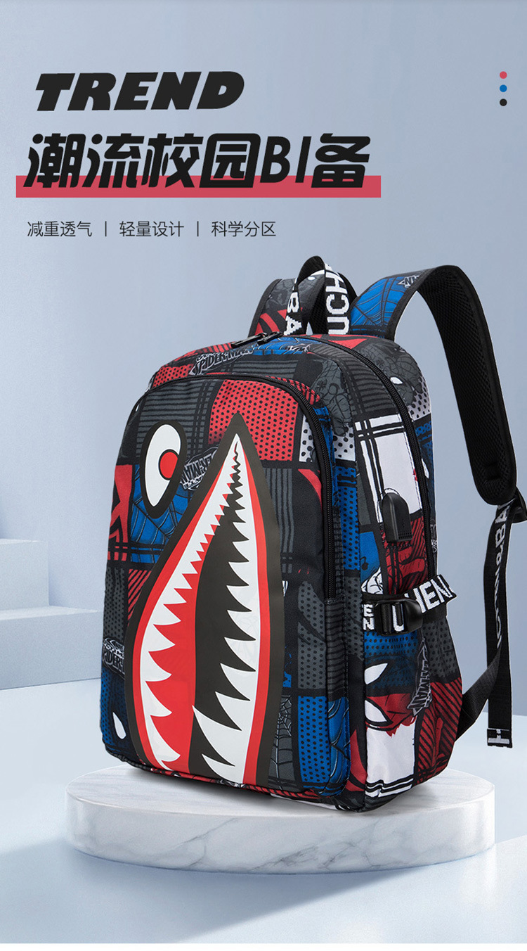 스쿨백 남성과 초등학교 어린이 3 ~ 6 학년 경량 배낭 유행 대용량 맞춤형 상어 더블 배낭 트렌디스토어 가기