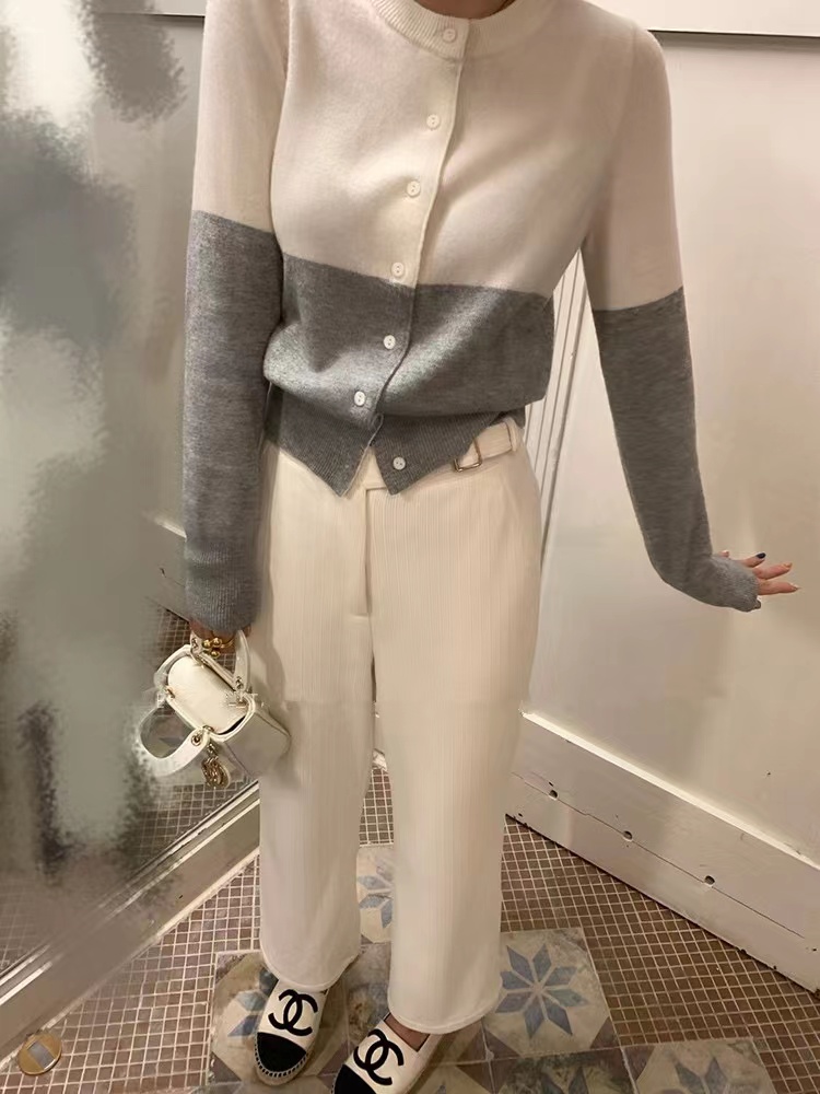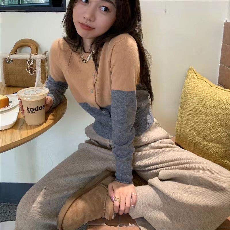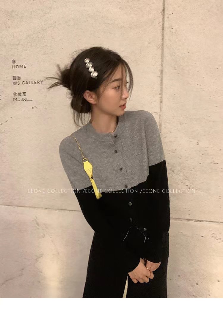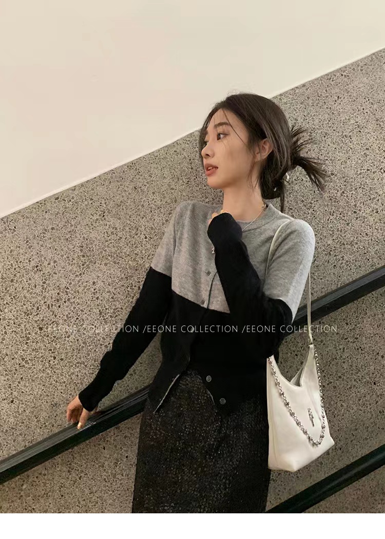 대비 색상 크루넥 울 니트 크루넥 가디건 여성용 틈새 스웨터 재킷 느슨한 모든 매치 긴팔 울 스웨터 탑스토어 가기
