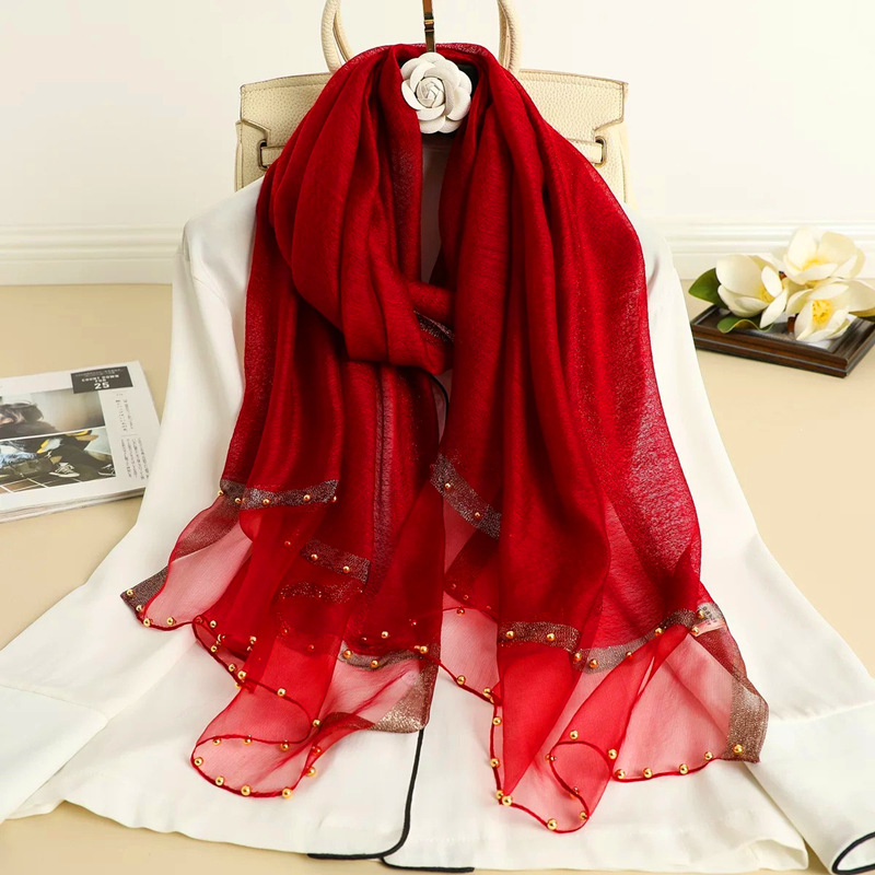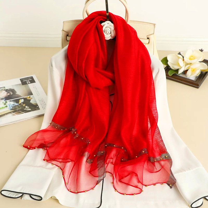 봄, 여름, 가을 새 스카프 여성용 얇은 수제 페르시 단색 목도리 골드 실크 스카프 실크 스카프 도매스토어 가기