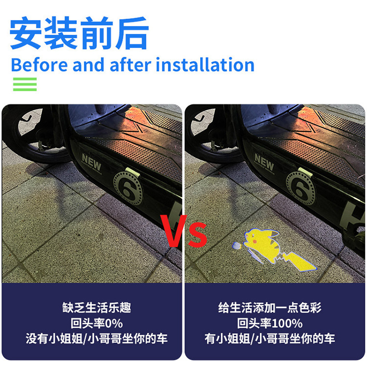 동적 환영 조명 자동차 전기 자동차 오토바이 만화 프로젝터 도어 조명 장식 주변 조명스토어 가기