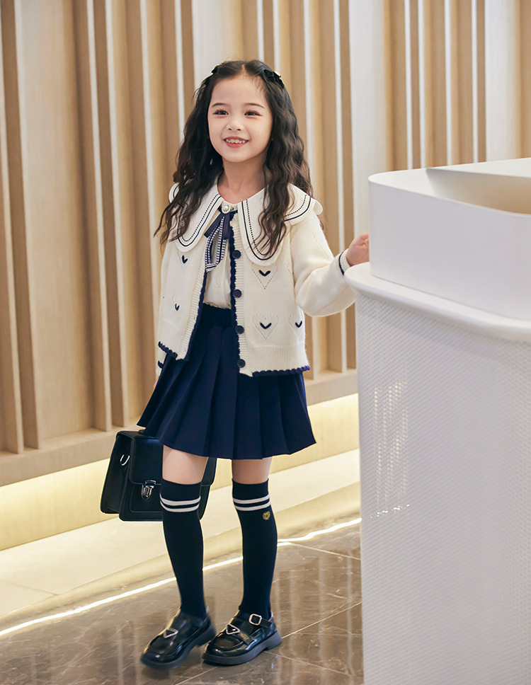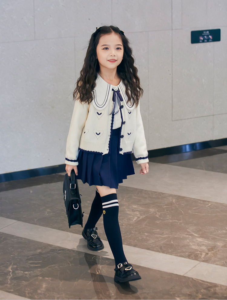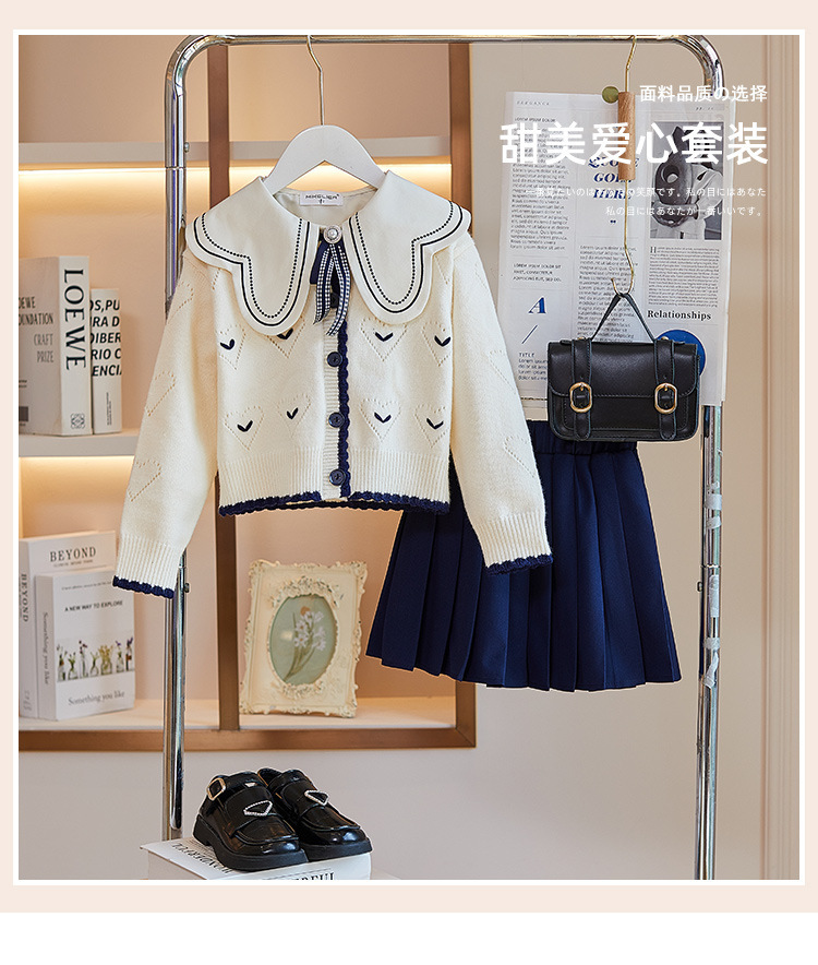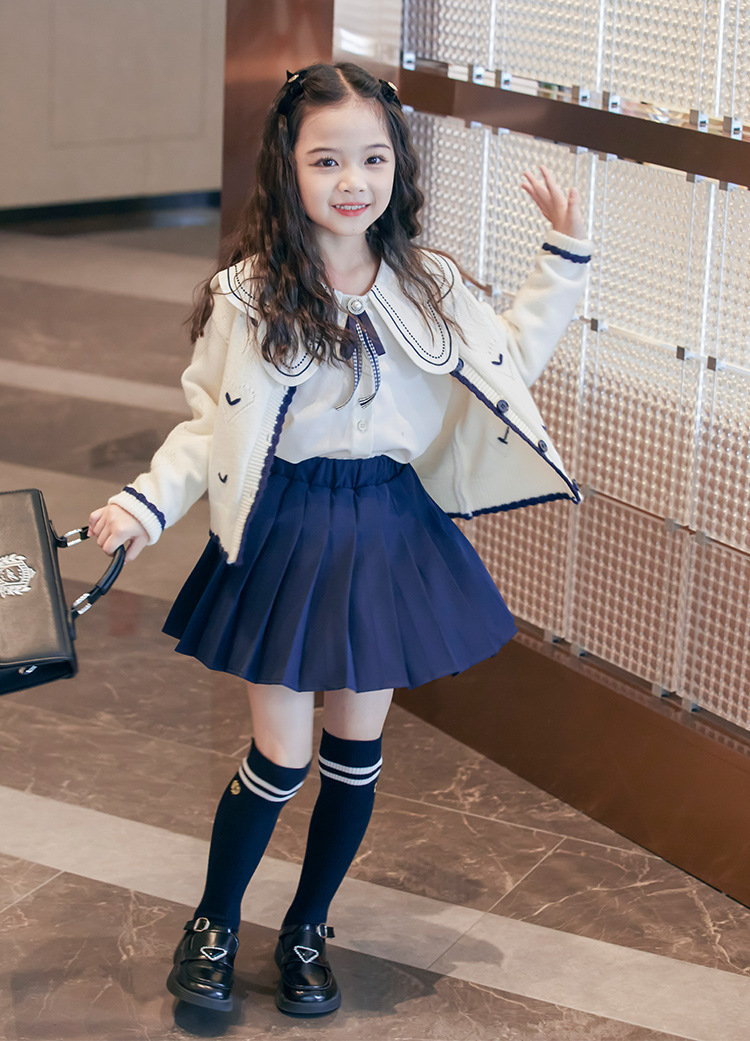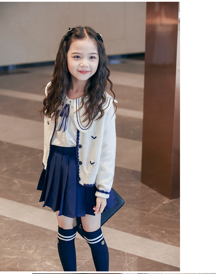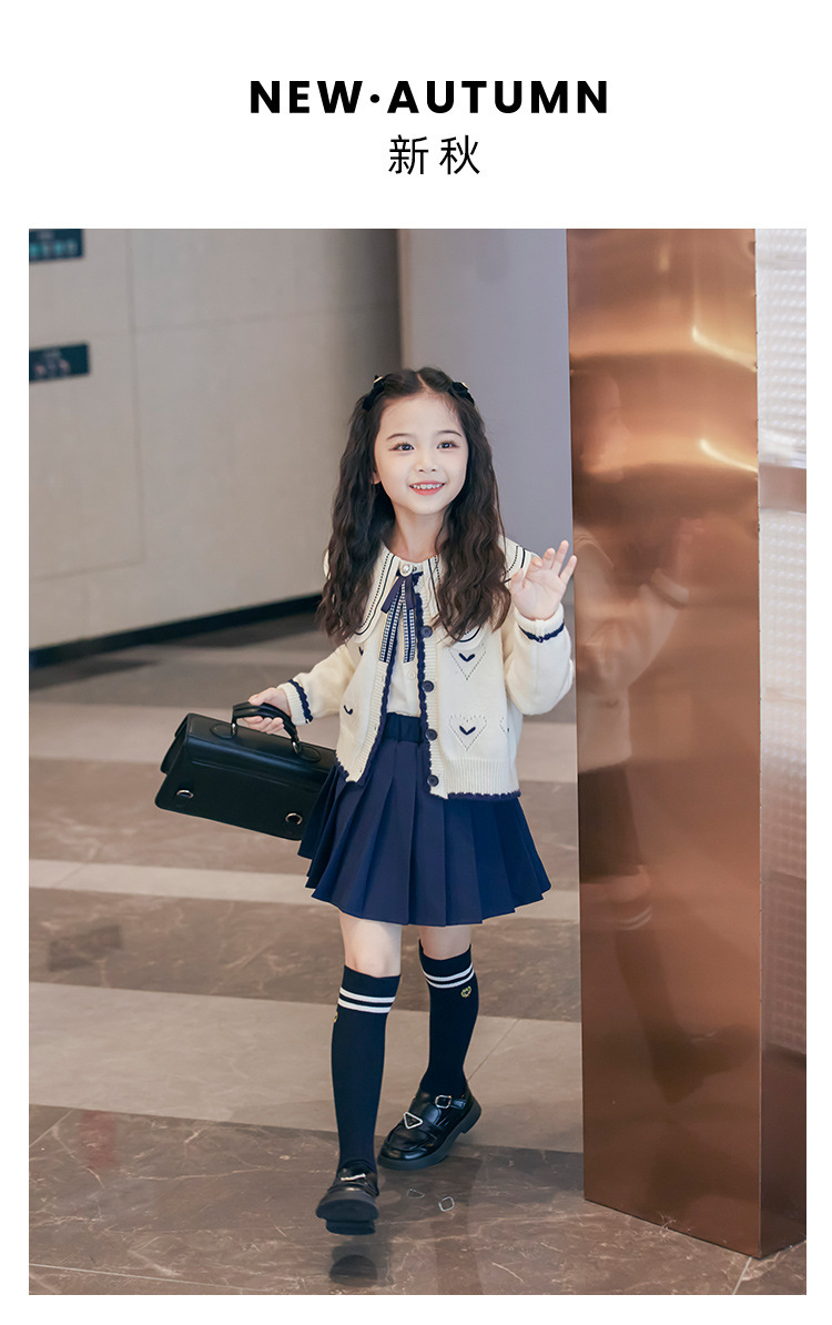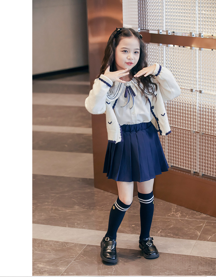 여자 JK 정장 봄과 가을 2024 새로운 어린이 대학 스타일 가을 옷 여자 주름 치마 3 피스 세트 서양식스토어 가기