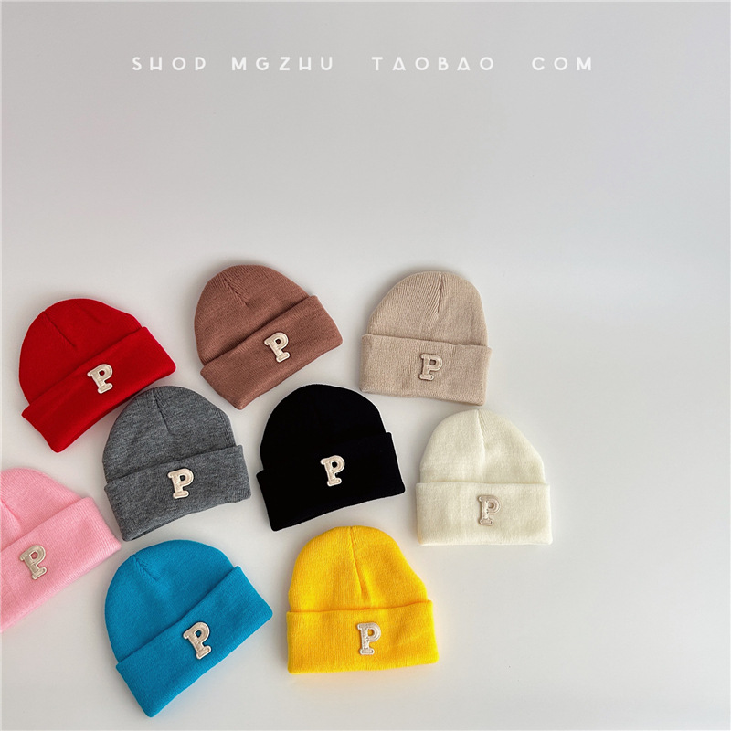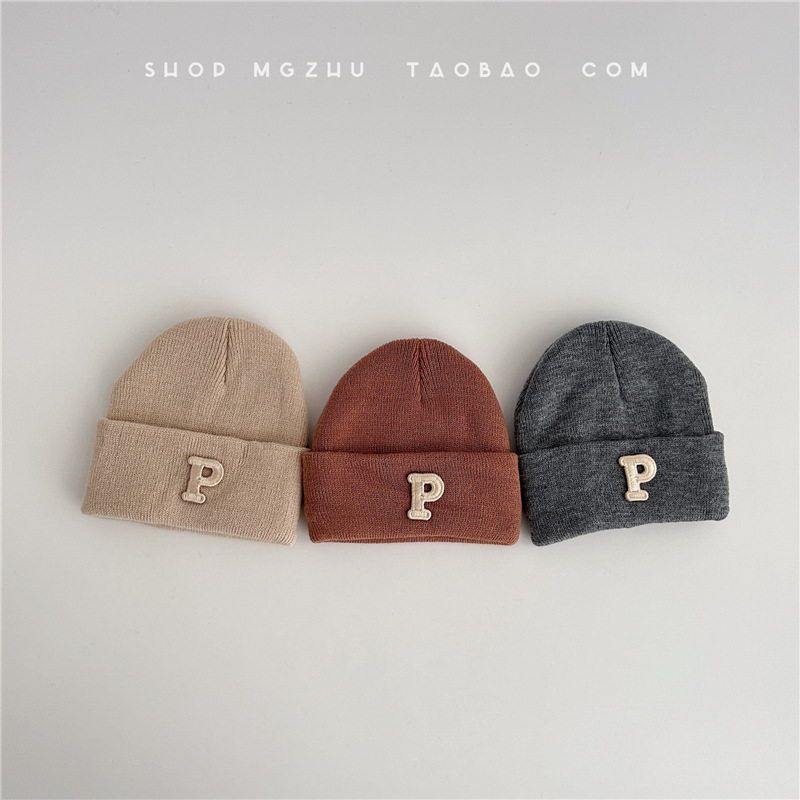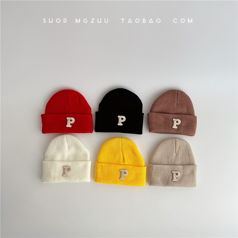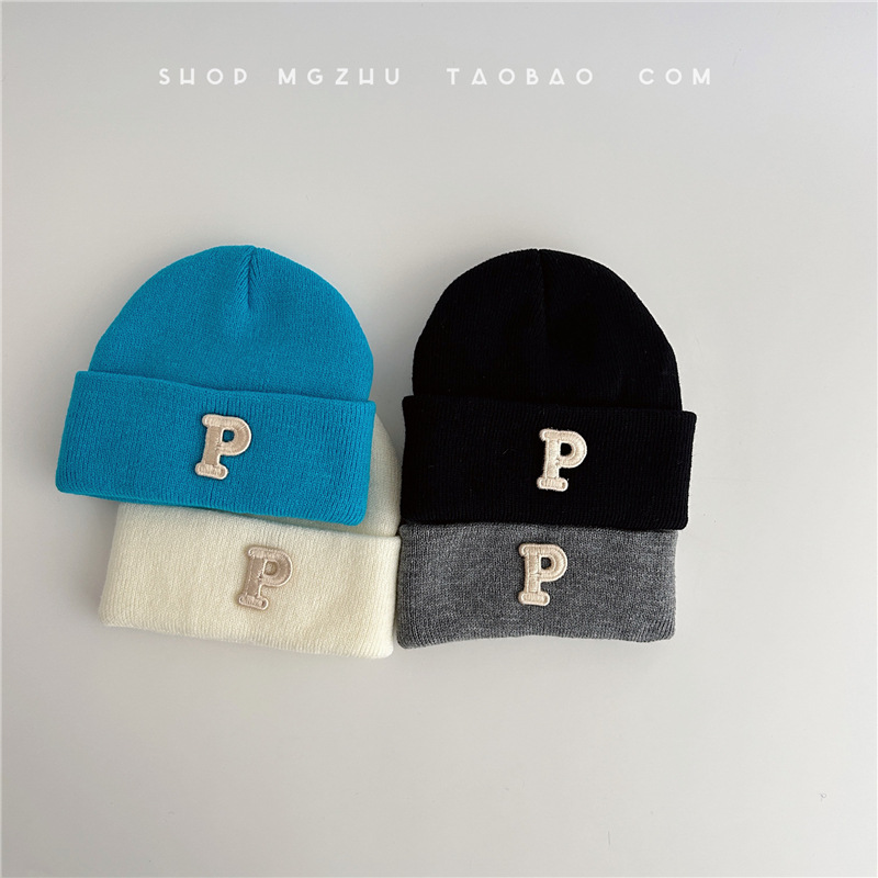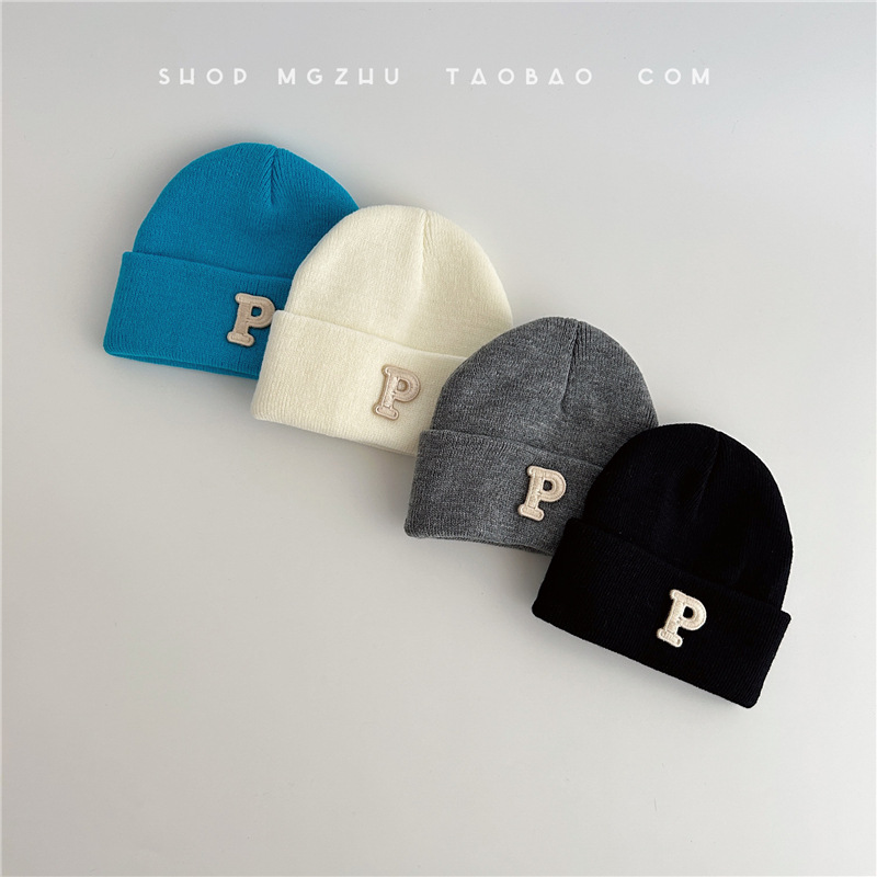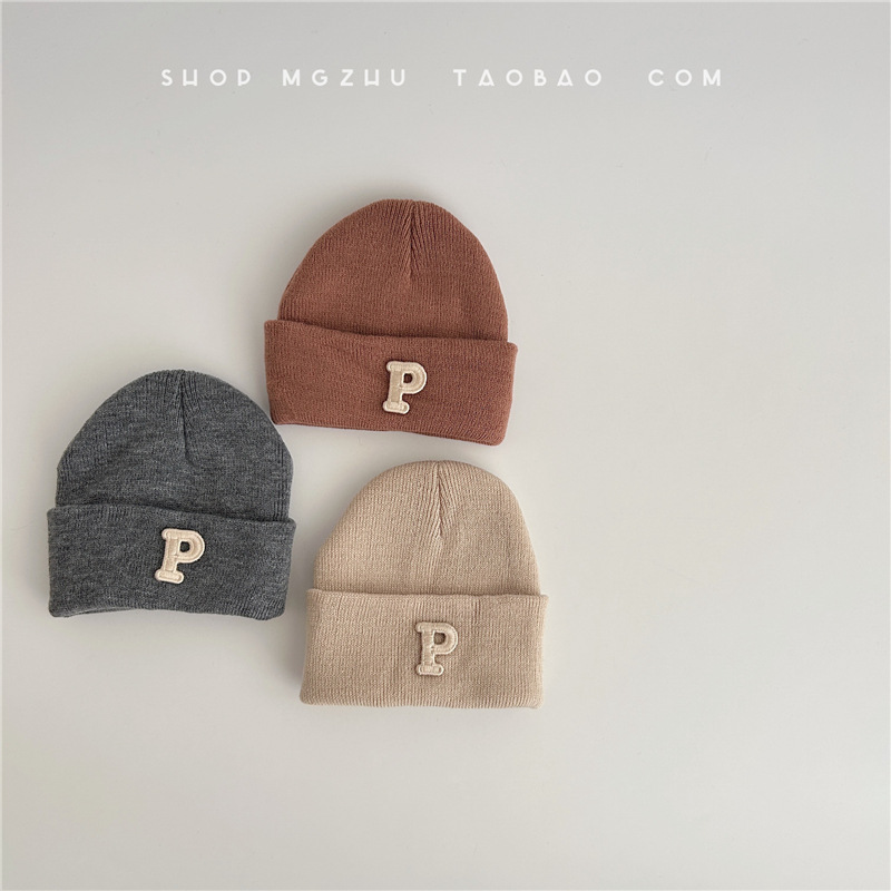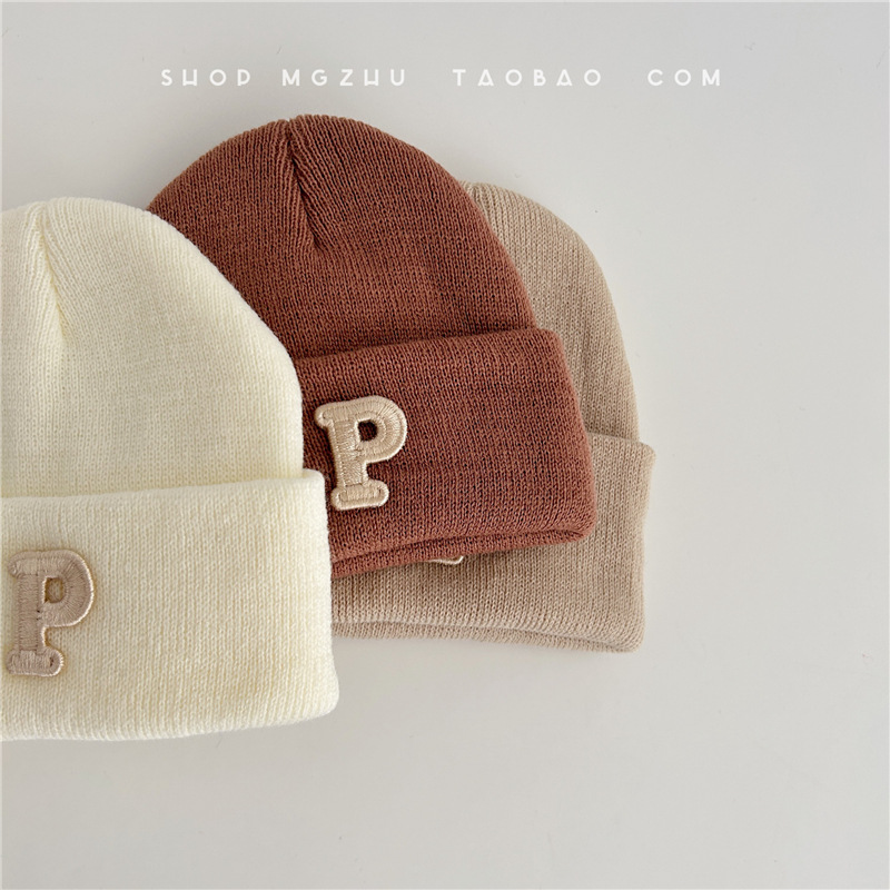 아기 모자 가을과 겨울 아기 따뜻한 니트 모자 웨스턴 스타일 모든 매치 P 편지 겨울 아웃 멀티 컬러 울 모자스토어 가기