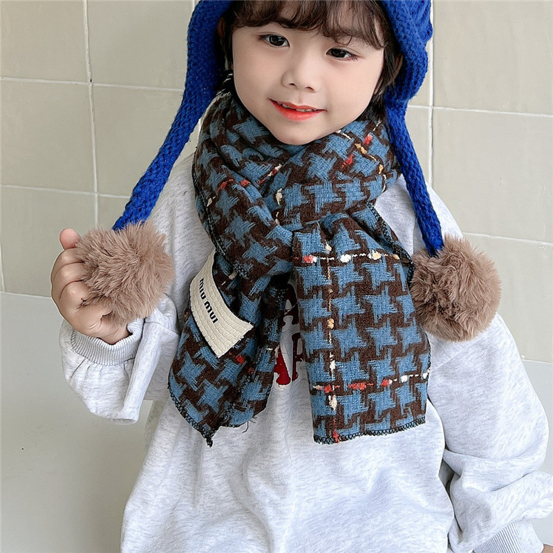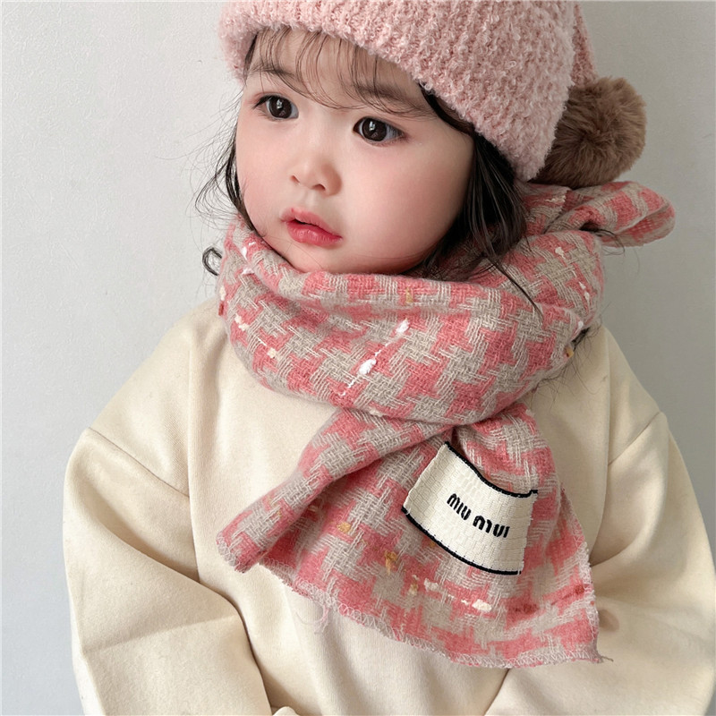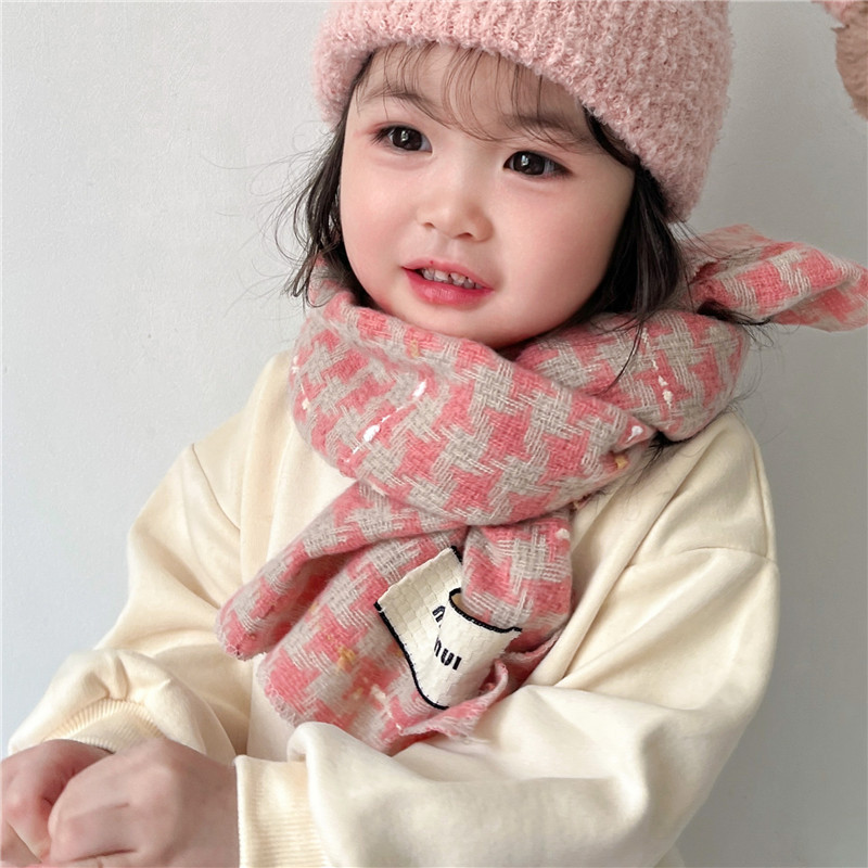 가을과 겨울의 한국어 버전 새로운 어린이 스카프 소년과 소녀 편지 로고 작은 격자 무늬 패션 따뜻한 아기 스카프 조수스토어 가기