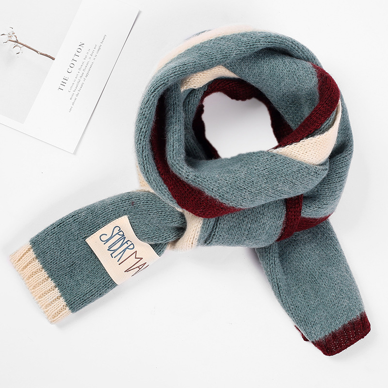 가을과 겨울의 한국어 버전 새로운 어린이 스카프 소년과 소녀 편지 로고 작은 격자 무늬 패션 따뜻한 아기 스카프 조수
