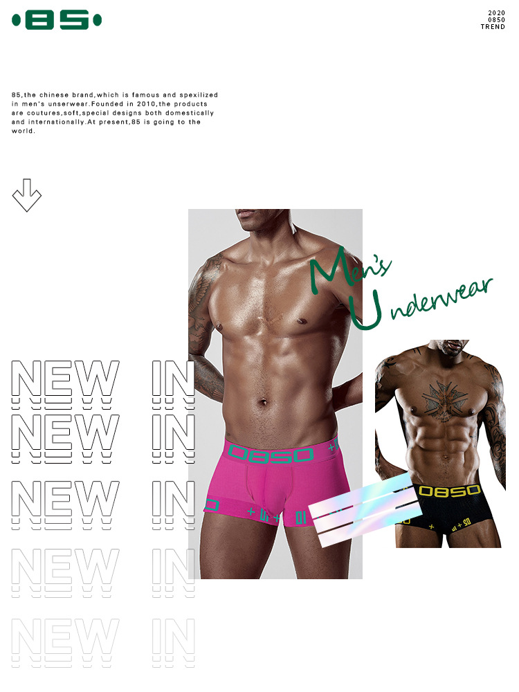 0850 새로운 남자의 네 모서리 속옷 면 바디 쉐이핑 통기성 섹시한 개인화 된 미드 웨이스트 복서 남성 트렌디 BS3514스토어 가기
