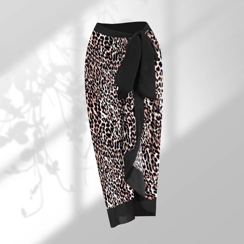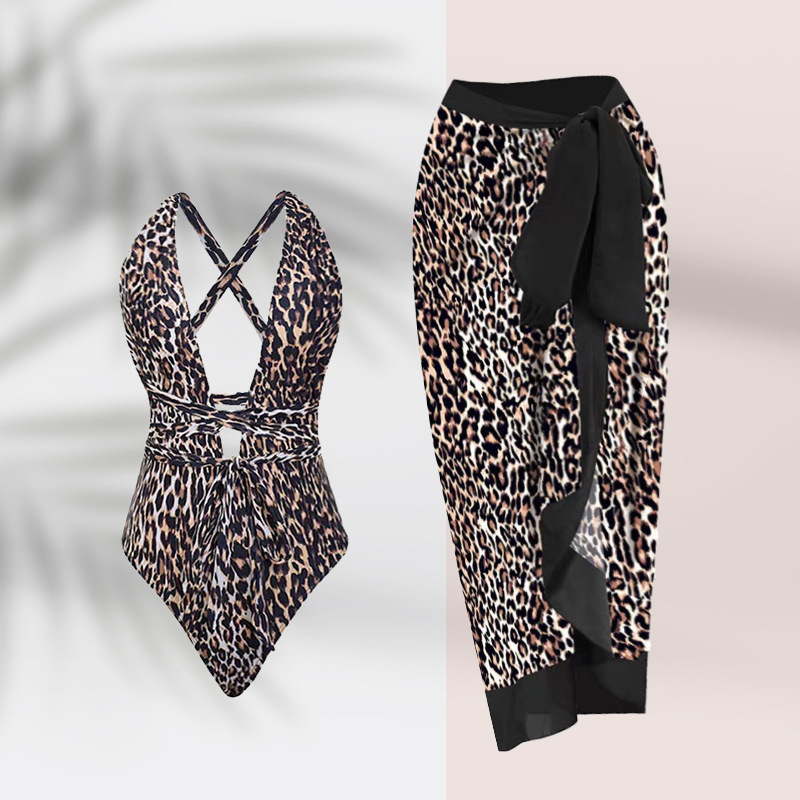 2024 대외 무역 새로운 레오파드 무늬 섹시한 원피스 수영복 여자의 유럽과 미국 중공 깊은 V 비키니 레이스 업 수영복 세트