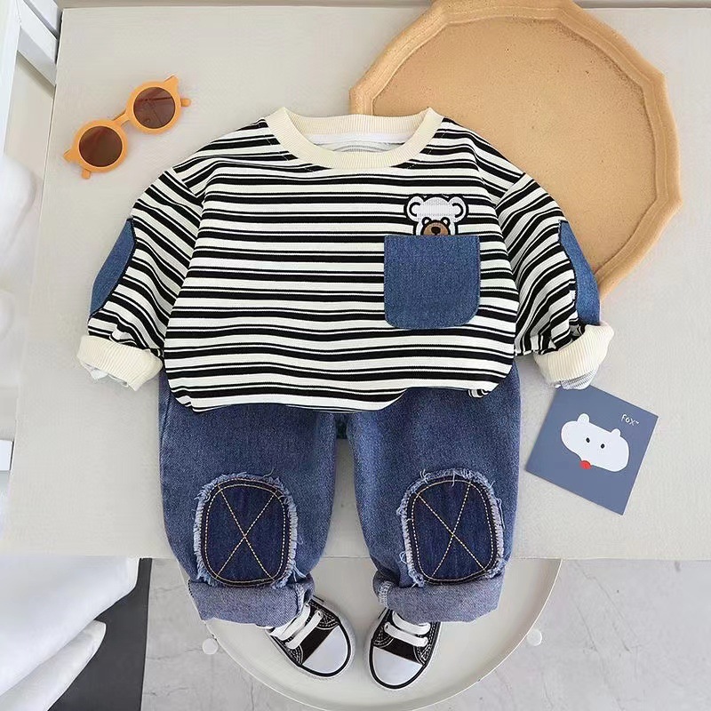 어린이 세트 봄 아기 세련된 긴팔 스포츠웨어 소년과 소녀 스웨터 투피스 가을 아기 옷스토어 가기