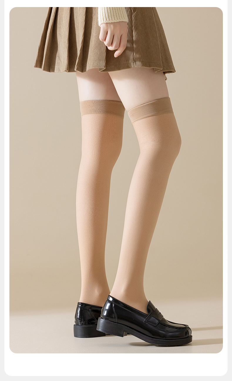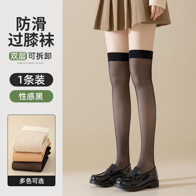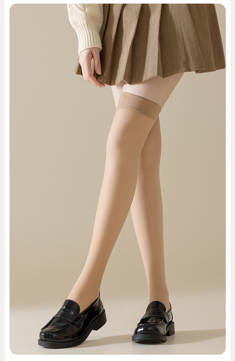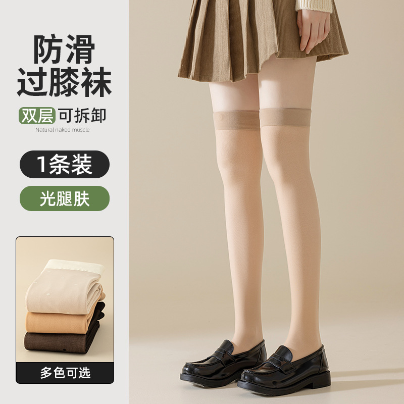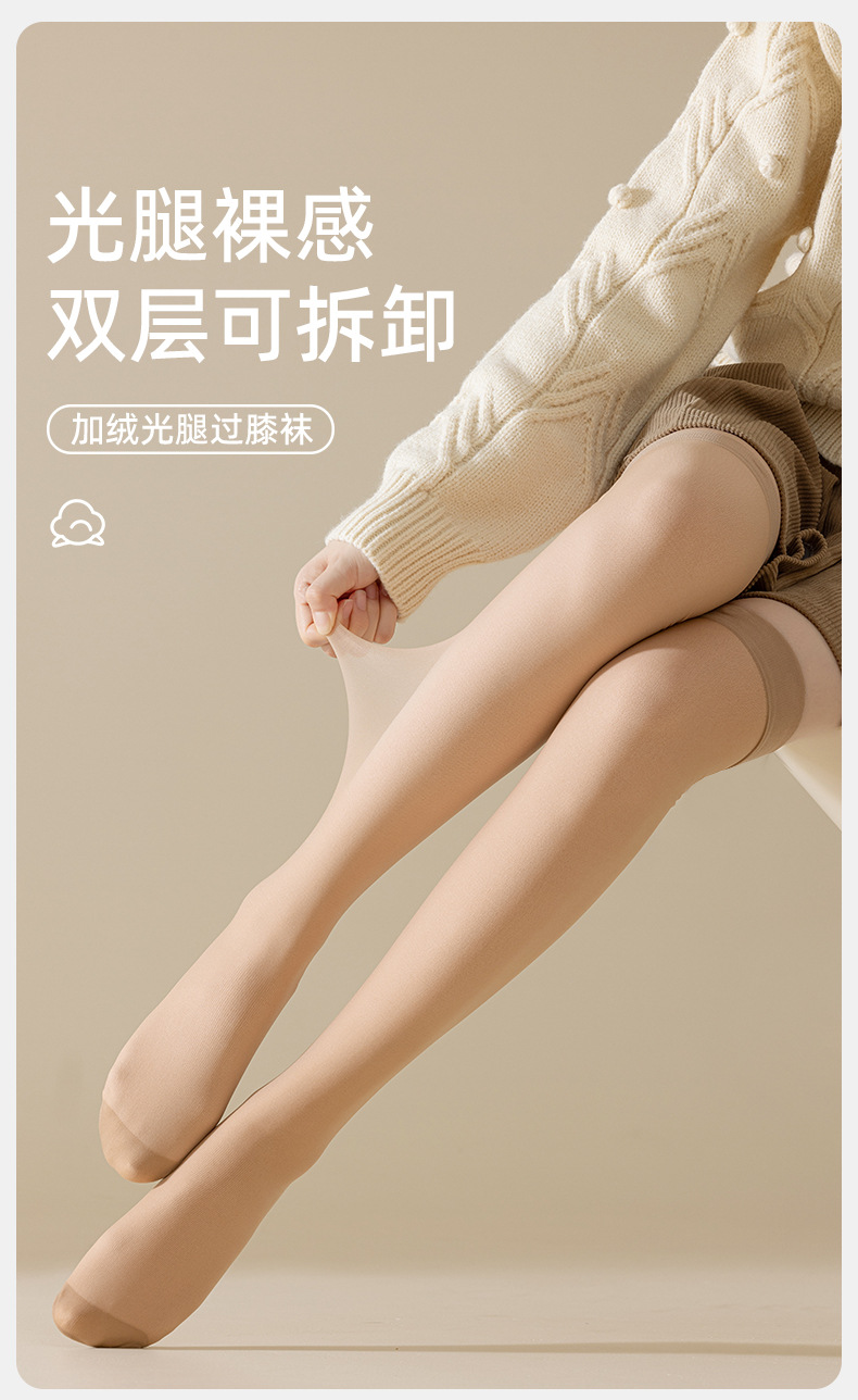 무릎 위 양말 여자의 봄 가을과 겨울 기모 두꺼운 이중 레이어 무릎 패드 여자의 가벼운 다리 유물 안티 후크 실크 돼지 고기 실크 양말 도매