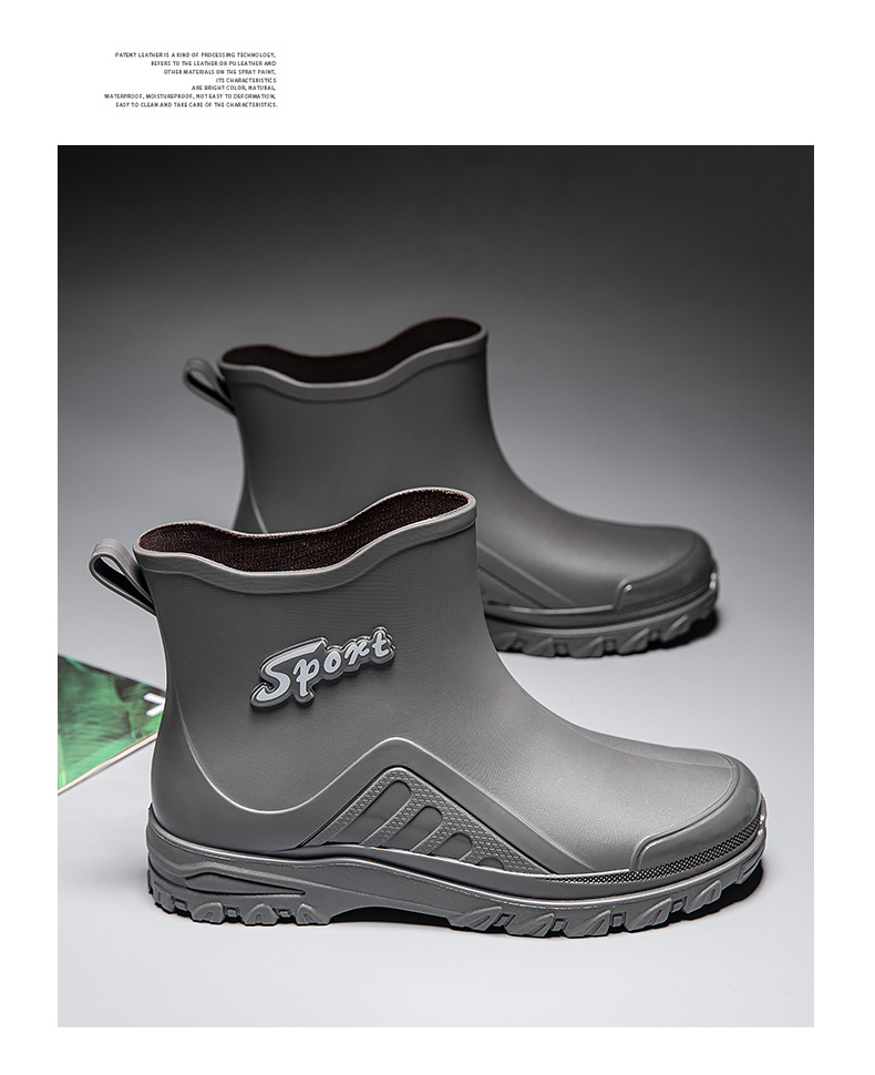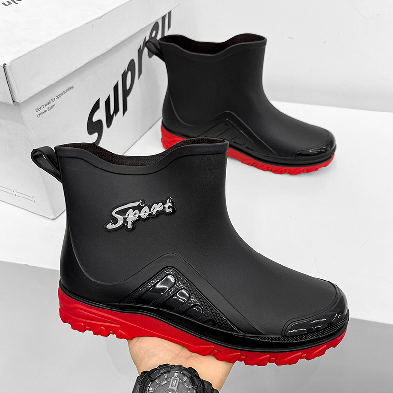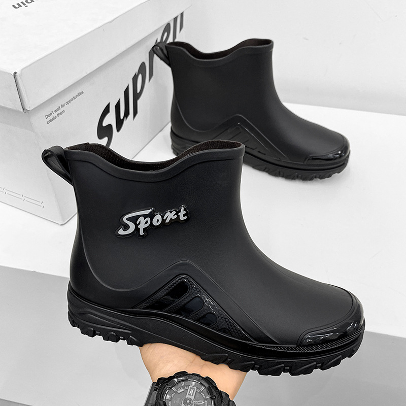 크로스 보더 새로운 패션 의상 방수 신발 장화 남성용 짧은 튜브 미끄럼 방지 두꺼운 바닥 세차 작업 부츠 남성용 워터 슈즈